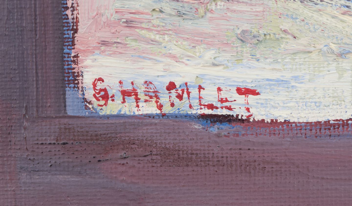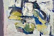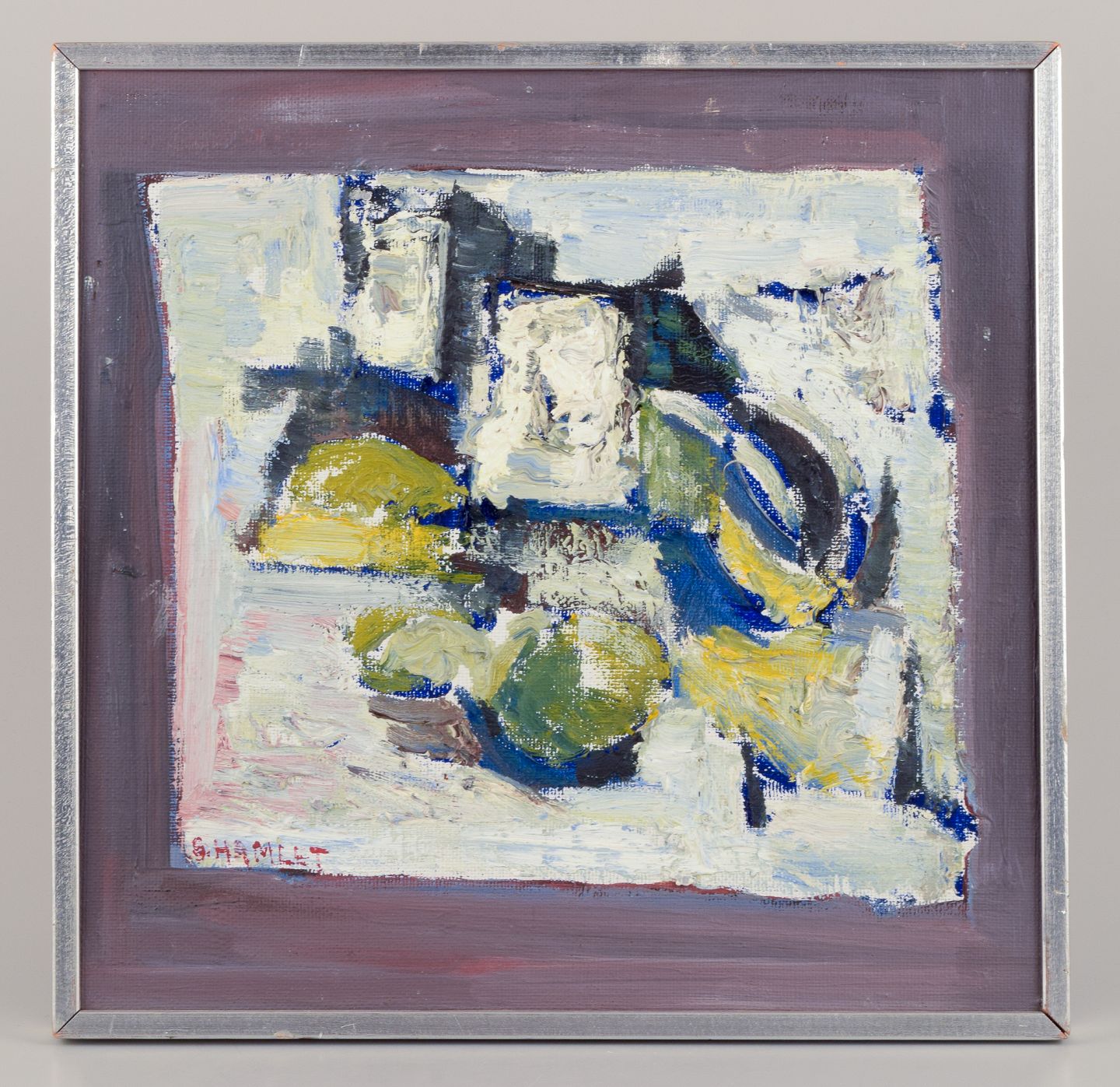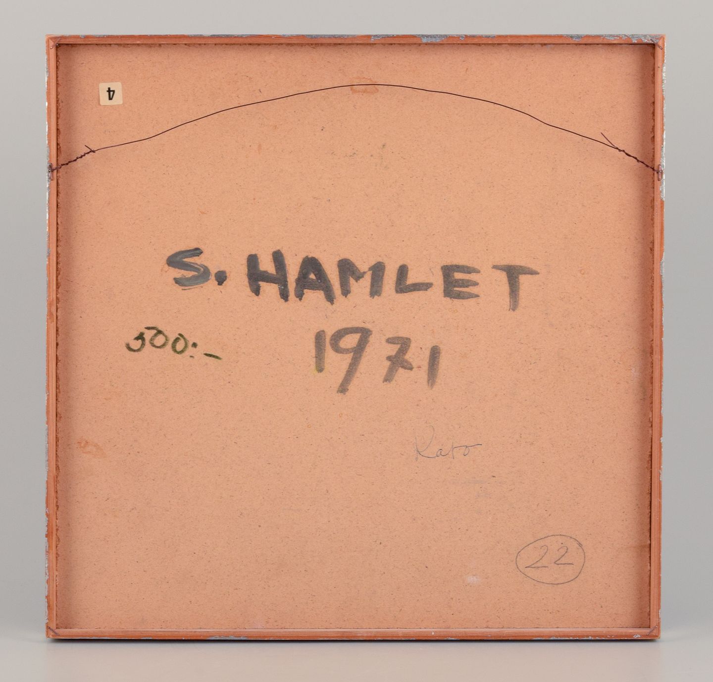 S. Hamlet, svensk kunstner. Olie på malerplade. Abstrakt komposition. Koloristisk palette, pastose strøg.