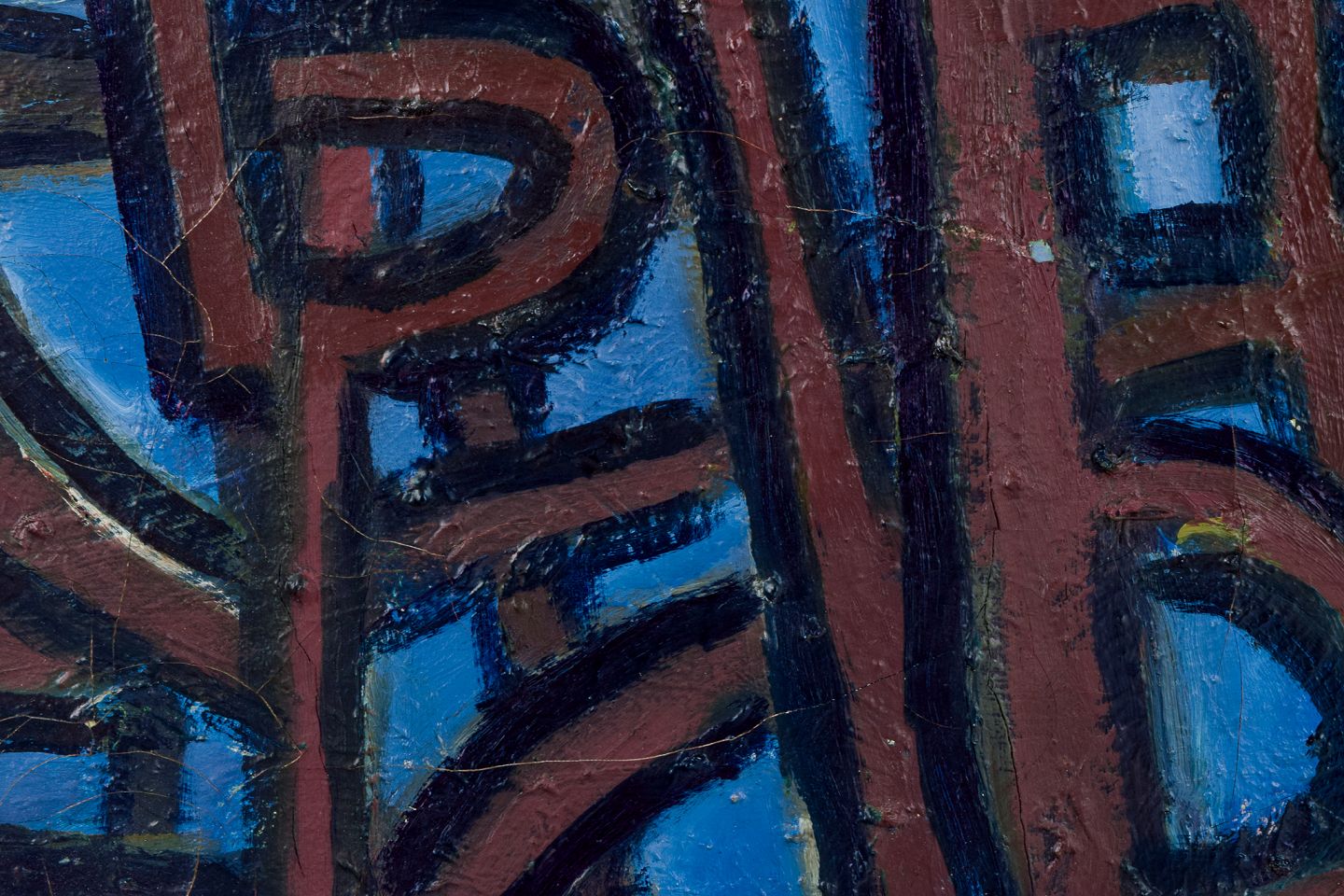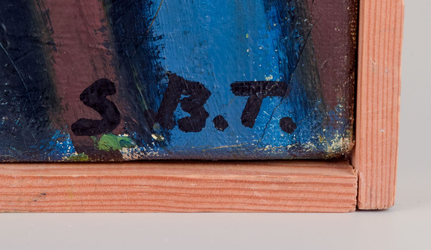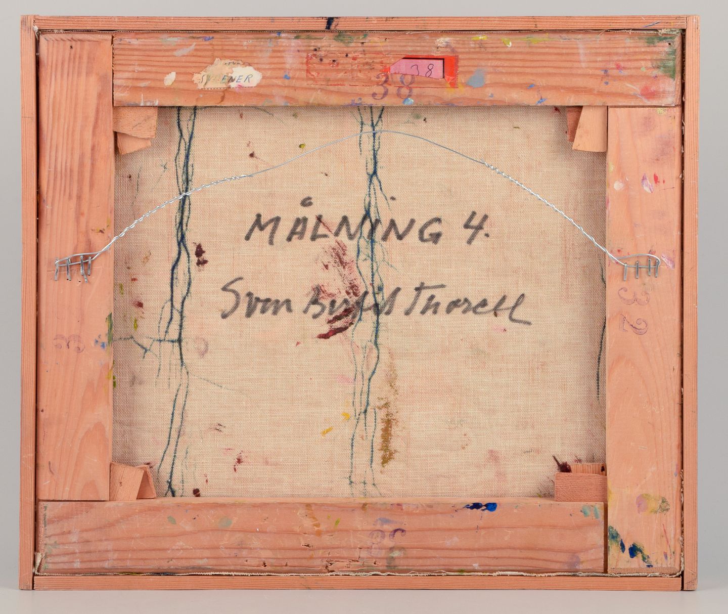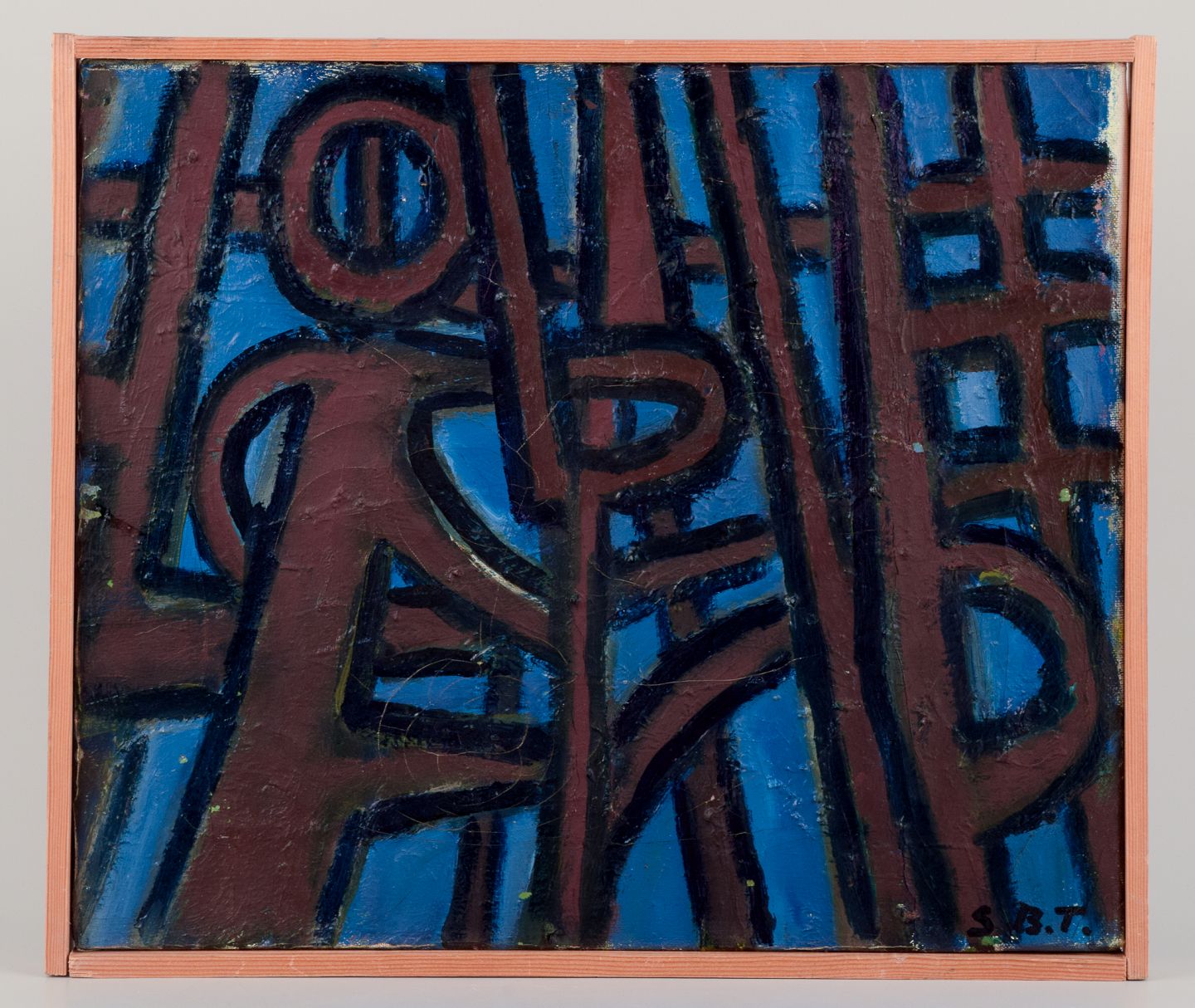 Sven Bertil Thorell, svensk kunstner. Olie på lærred. Abstrakt komposition. 1960’erne. Signeret SBT. I flot stand med krakeleringer. Lærred: 38,0 cm. x 32,0 cm. Totalmål: 40 cm. x 34 cm.