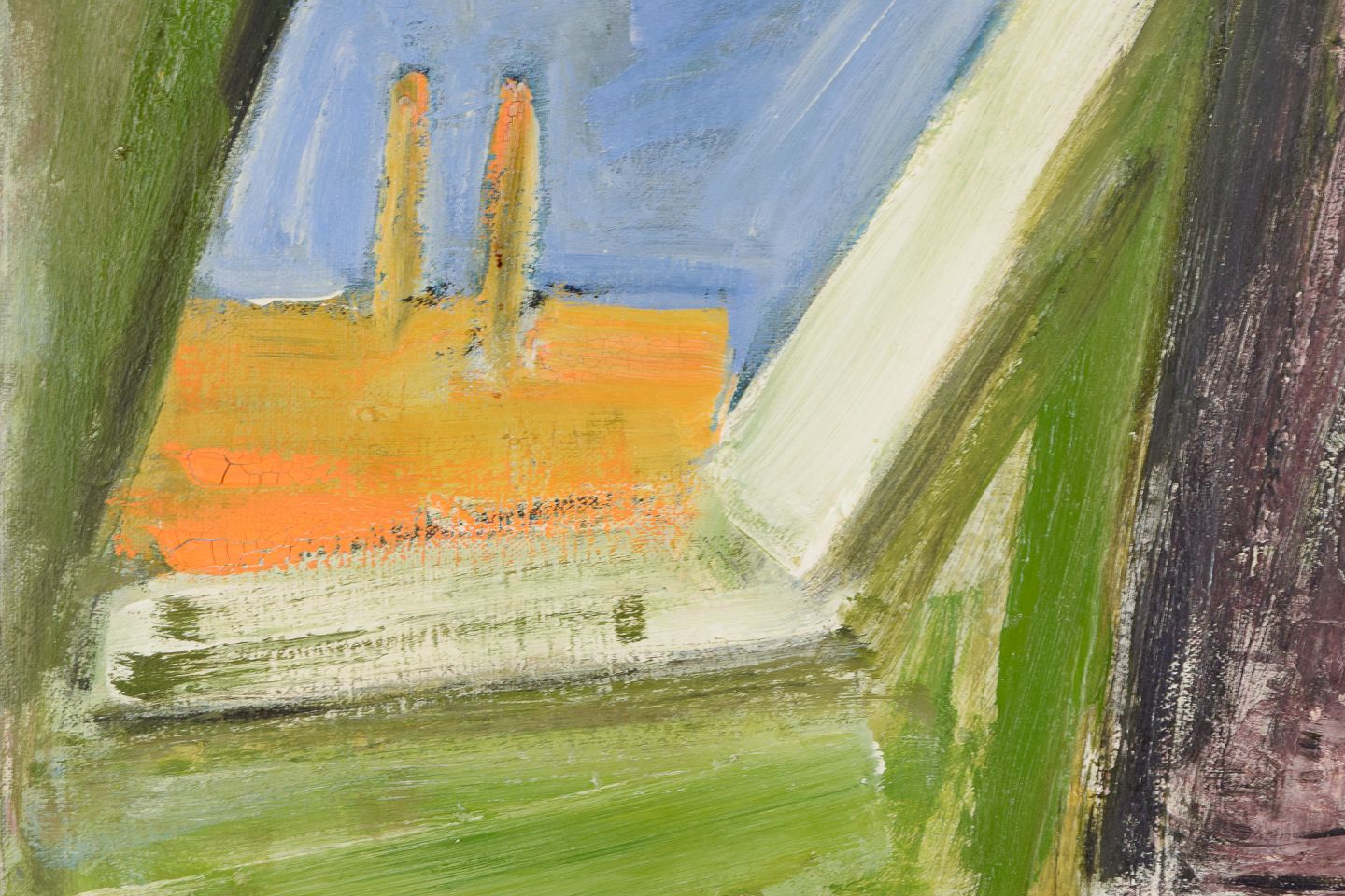 Pär Lindblad (1907-1981), olie på lærred. Modernistisk opstilling. Interiør fra atelier.