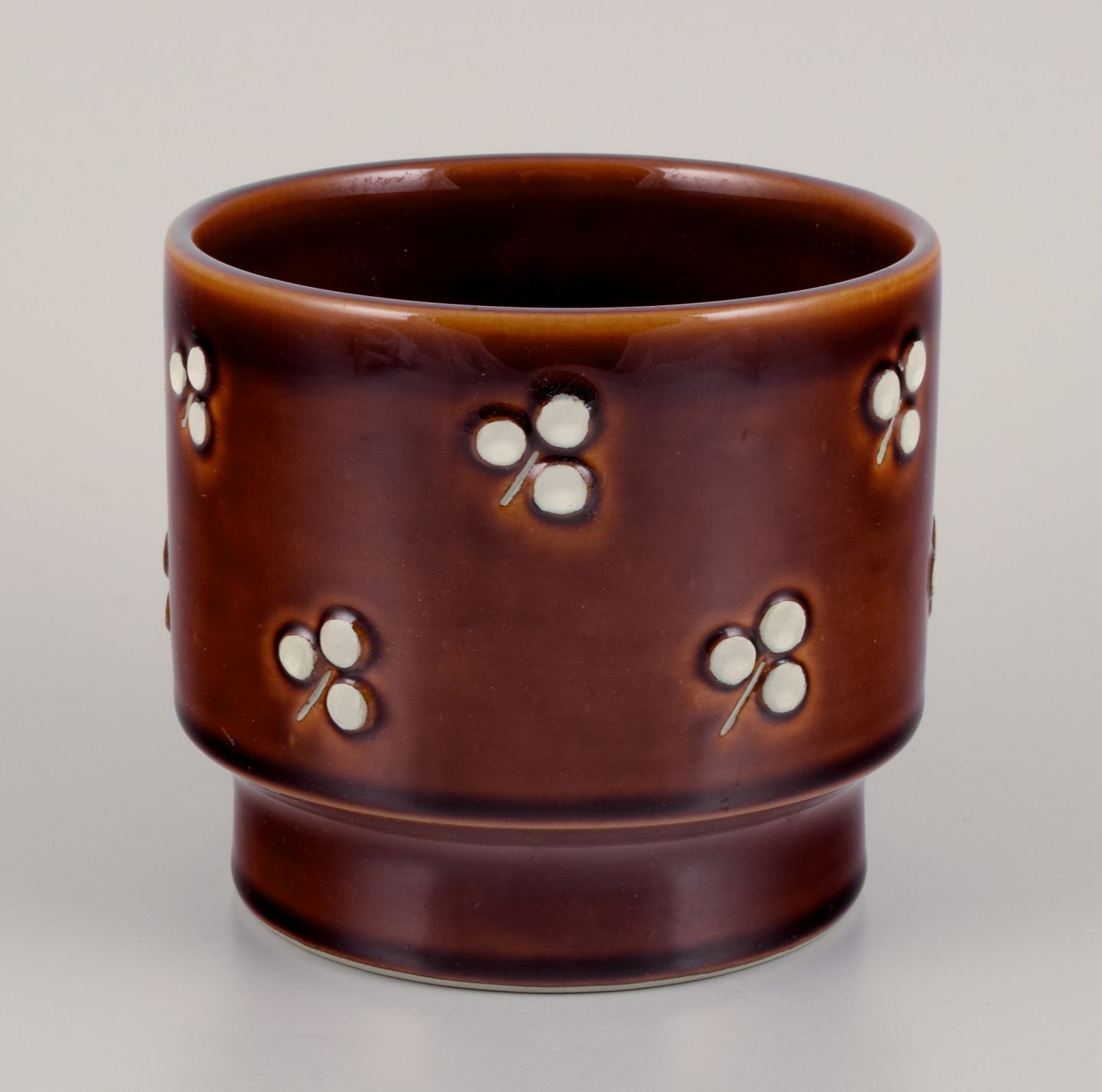 Sylvia Leuchovius (1915–2003) for Rörstrand Atelje. Urtepottekrukke i keramik. Glasur i brune nuancer.