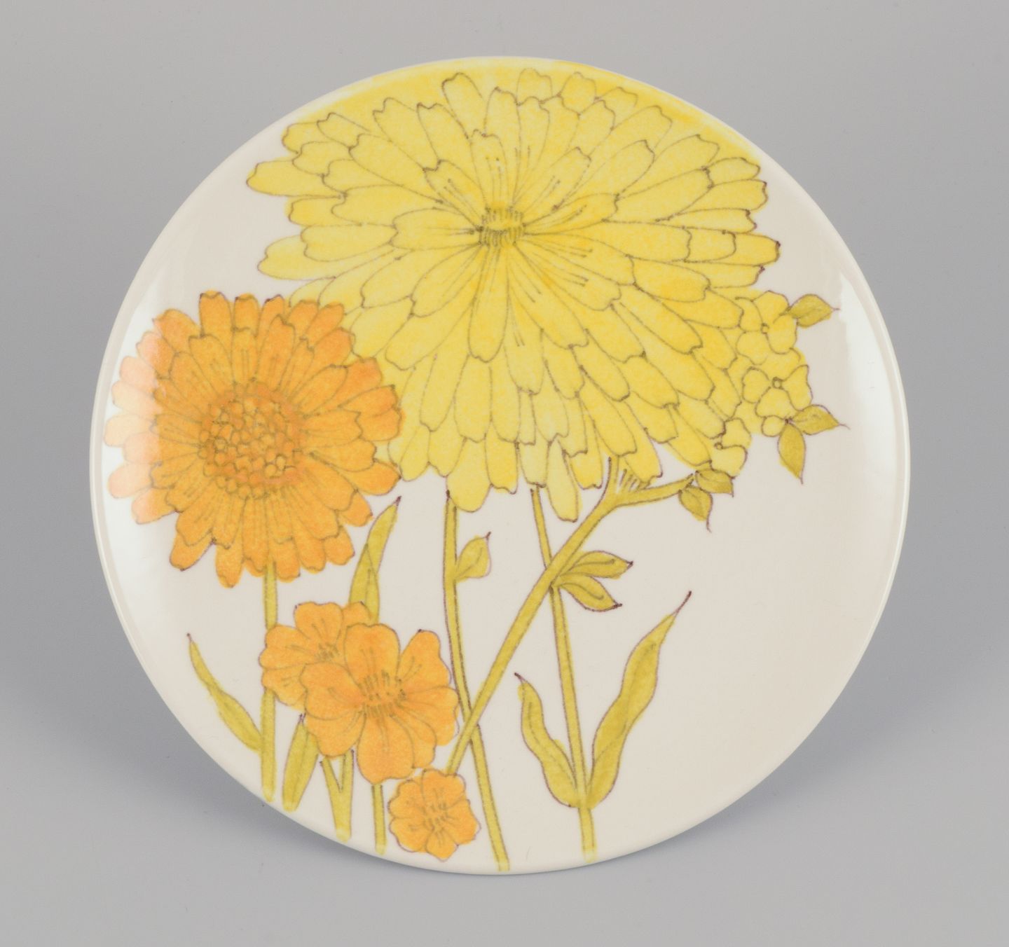 Ernestine Salerno, Italien. Et sæt på fem tallerkner i keramik. Håndmalet med solsikker. Signeret ”Ernestine”. 1970’erne. Perfekt stand. Mål: D 19,5 cm. x H 2,5 cm.