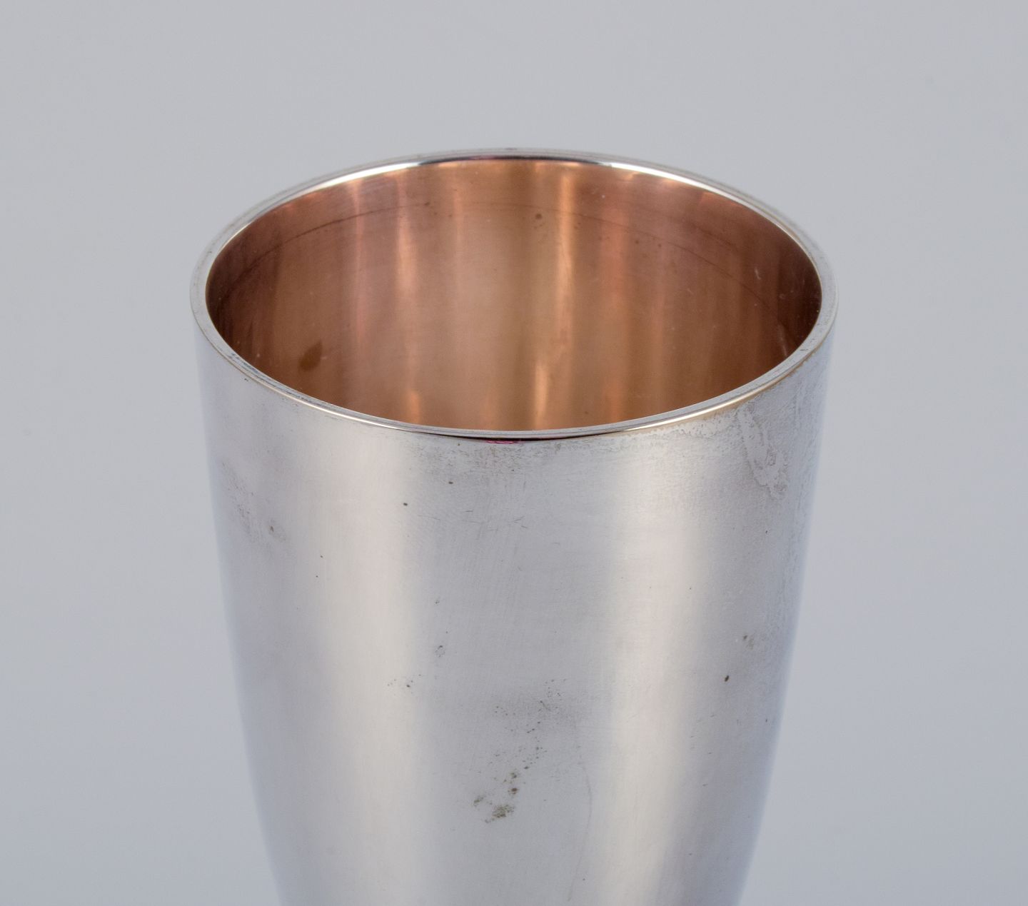 Gunilla Lindahl for Scandia Present, Sverige. To store champagnefløjter i nysølv. Håndlavet. Ca. 1980. Mærkat. I flot stand. Mål: H 24,7 cm. x D 6,5 cm.