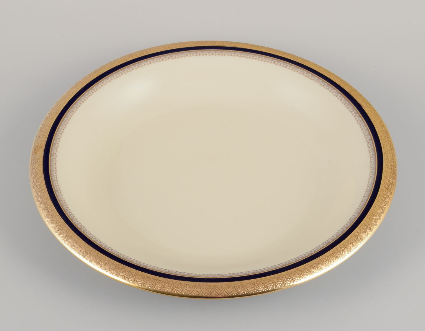 Hutschenreuther, Tyskland. Stort rundt serveringsfad fra serien ”Margarete”. Hånddekoreret med guld og kongeblå.