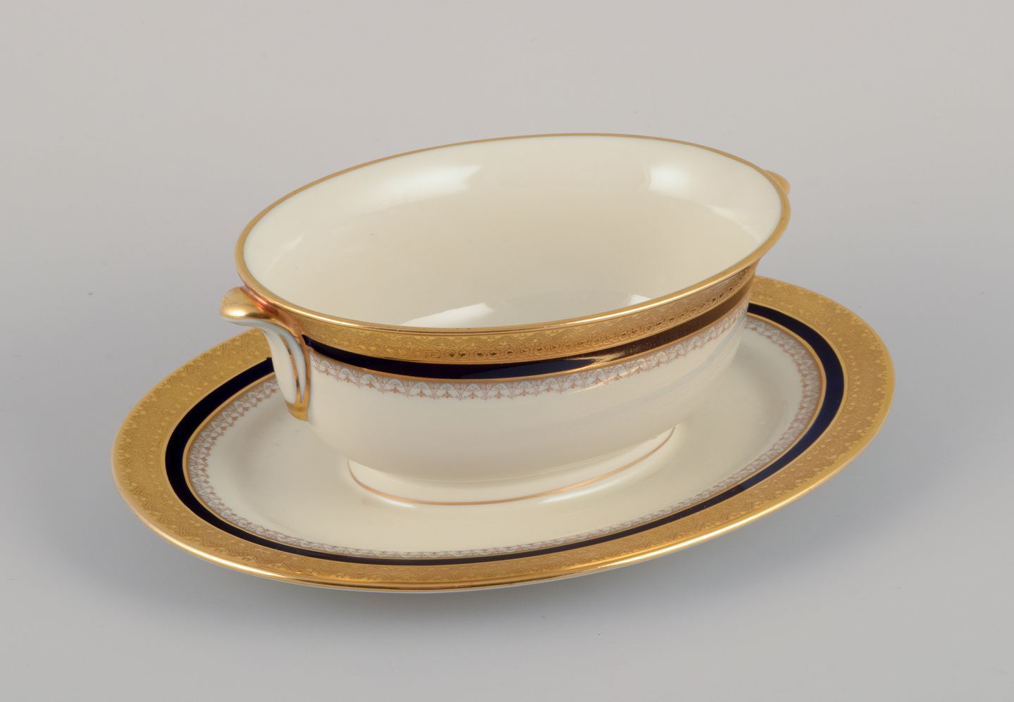Hutschenreuther, Tyskland. To fade samt saucekande fra serien ”Margarete”. Hånddekoreret med guld og kongeblå.