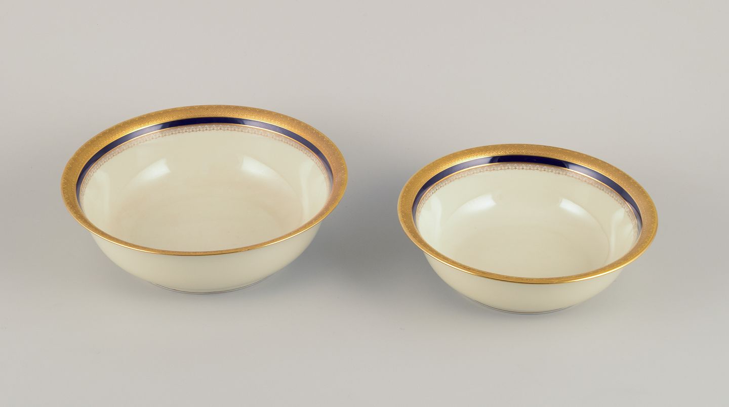 Hutschenreuther, Tyskland. To skåle fra serien ”Margarete”. Hånddekoreret med guld og kongeblå.