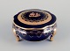 Limoges, Frankrig. To lågkrukker i porcelæn. Dekoreret i 22-karat bladguld. Smuk kongeblå glasur. Scène galante.