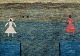 Svensk tekstildesigner. Tæppe i ren uld. Håndvævet. Designet med personer og geometriske felter i mange forskellige farver. Ca. 1960’erne. I perfekt stand. Mål: 150 cm. x 109 cm.