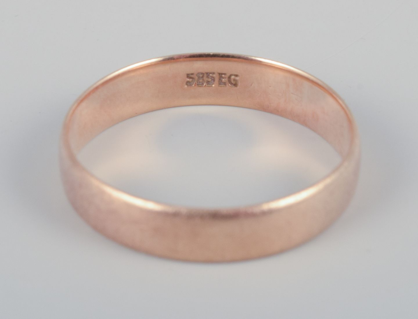 Dansk guldsmed. 14 karat alliance guldring. Klassisk guldring fra midt 1900-tallet. Stemplet 585 EG Flot brugt stand. Størrelse: 19,5 mm - (U 61,5)