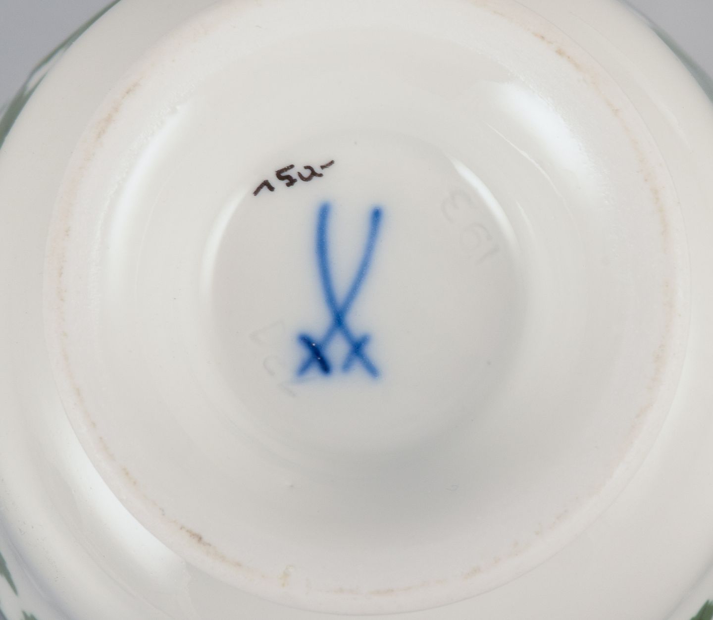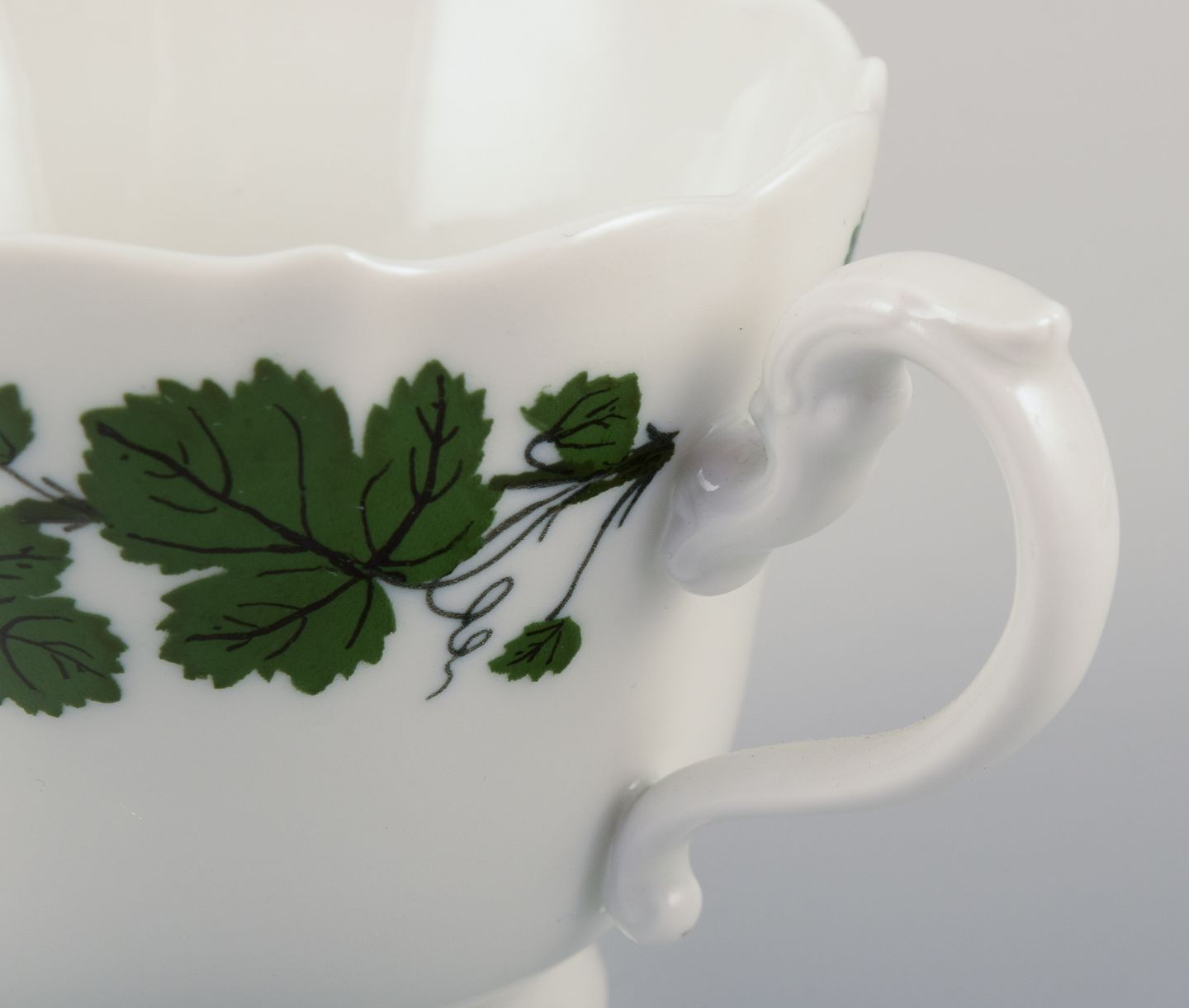 Meissen, Tyskland, Green Ivy Vine, tre kaffekopper med tilhørende underkopper. Håndmalet.