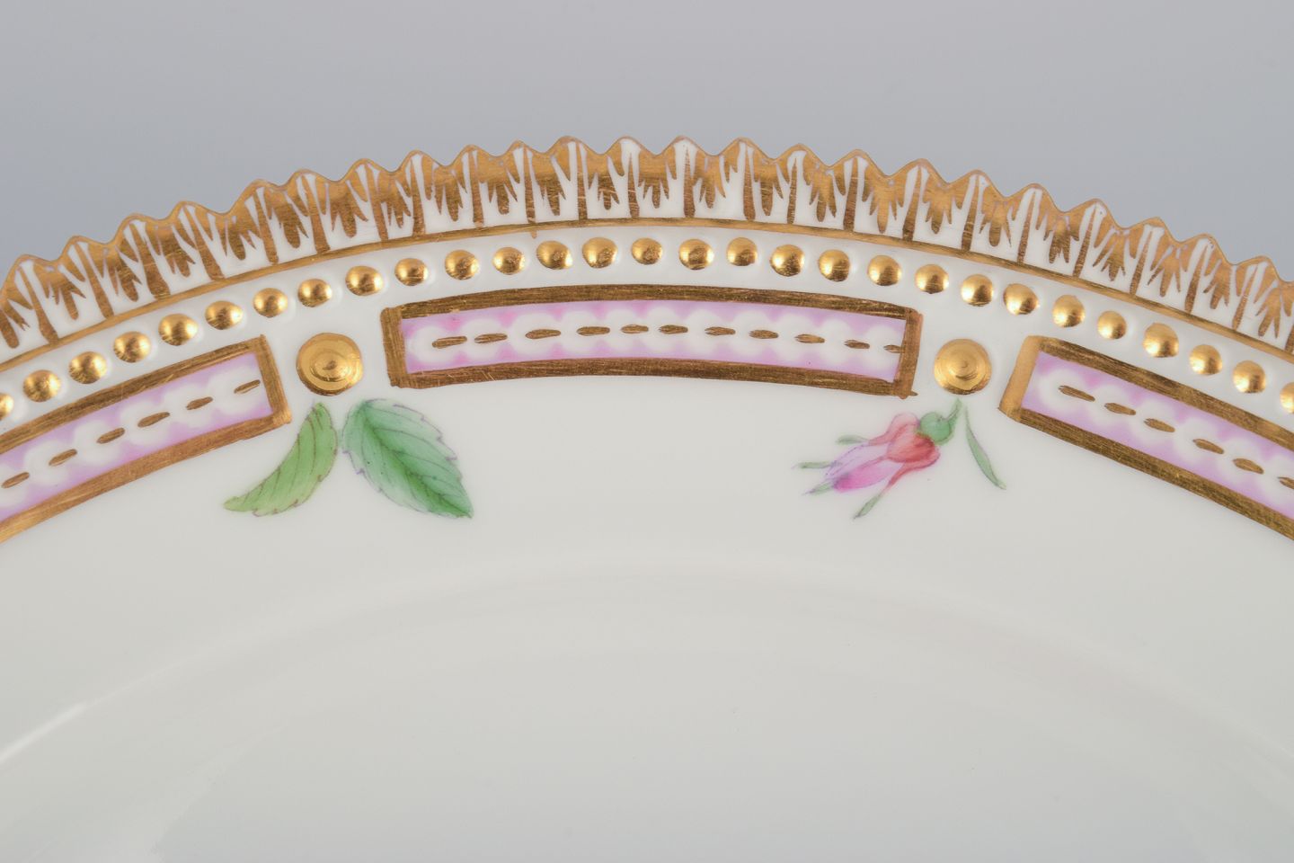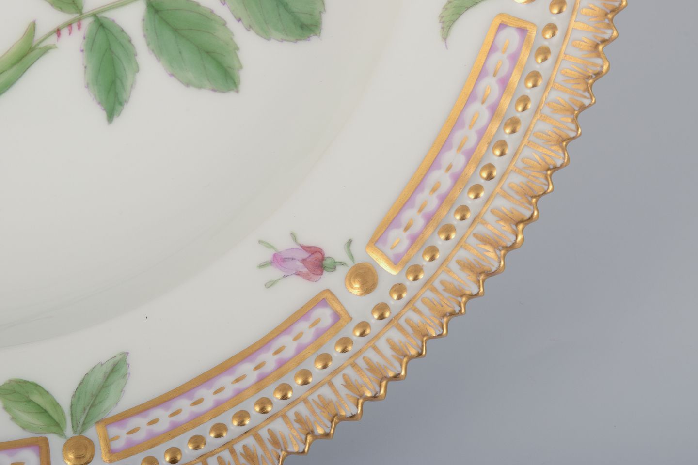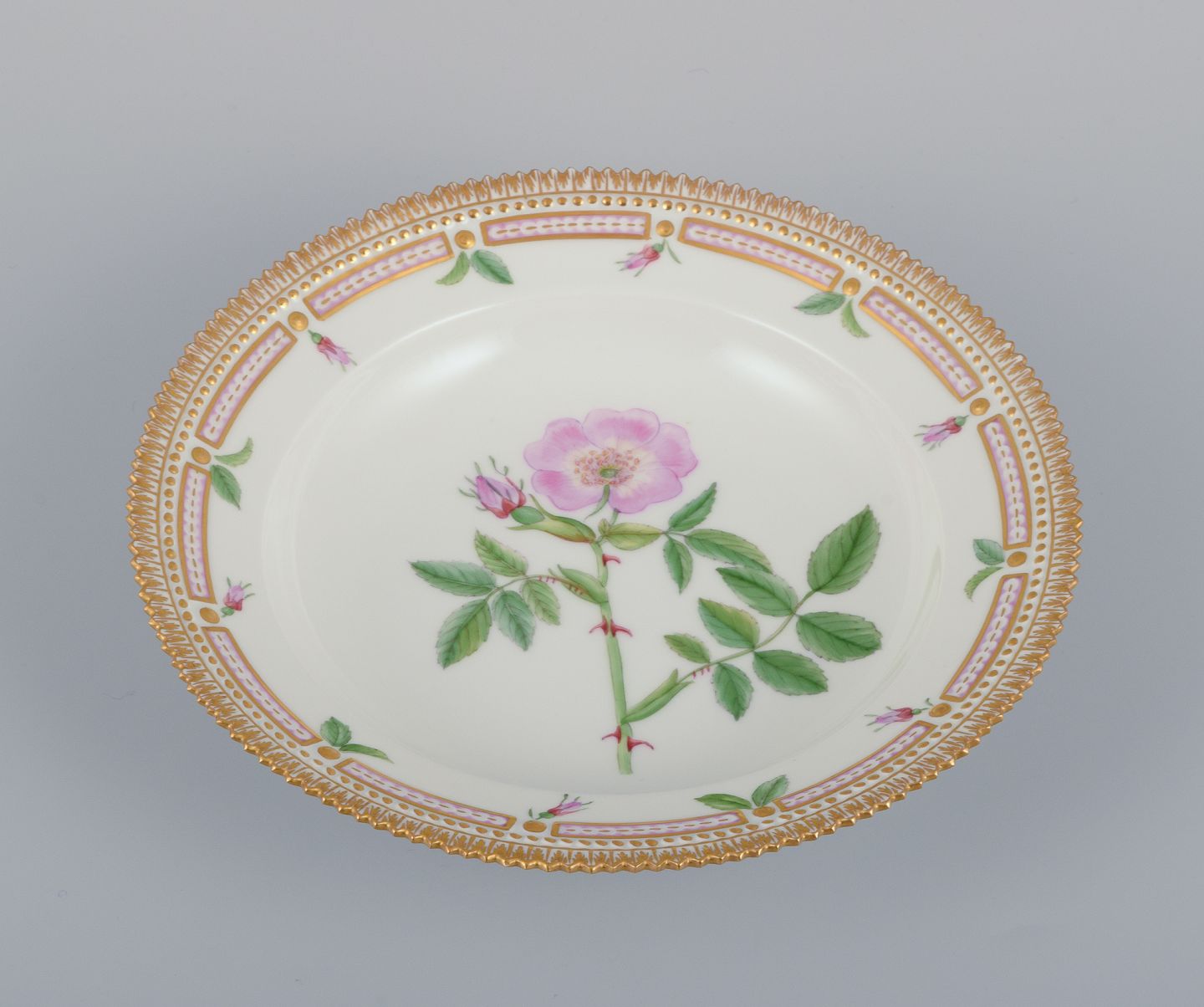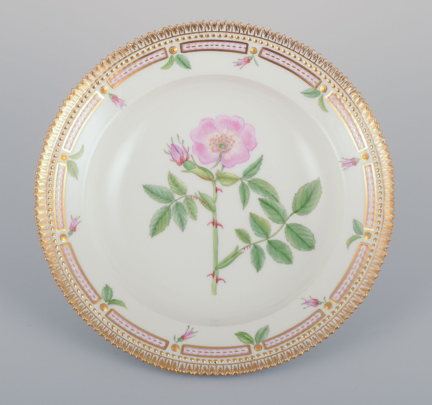 Royal Copenhagen Flora Danica. Dyb tallerken. Håndmalet med lyserød blomst ”Rosa Canina L”. Model: 20/3546 Datering: 1962 Første sortering. Perfekt stand. Stemplet. Mål: D 22,0 cm. x H 4,5 cm.