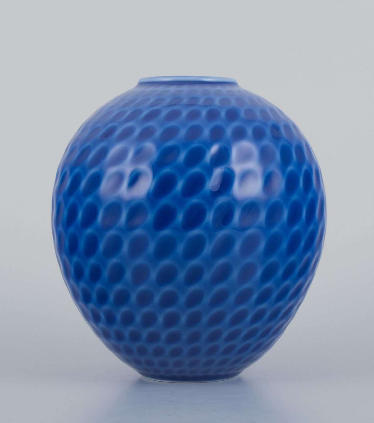 Maria Torstensson for Royal Copenhagen, porcelænsvase med glasur i blå nuancer. Dråbeformet dekoration.