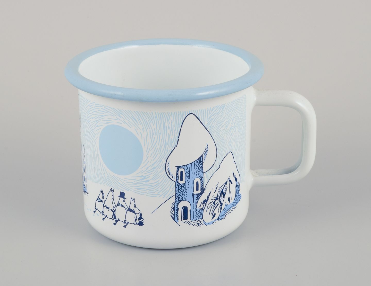 Muurla, Finland. To krus i emalje med hank. Motiv af Mumitrolde. 2000-tallet. Perfekt stand. Stemplet. Mål: D 9,5 cm. uden hank x H 8,0 cm.