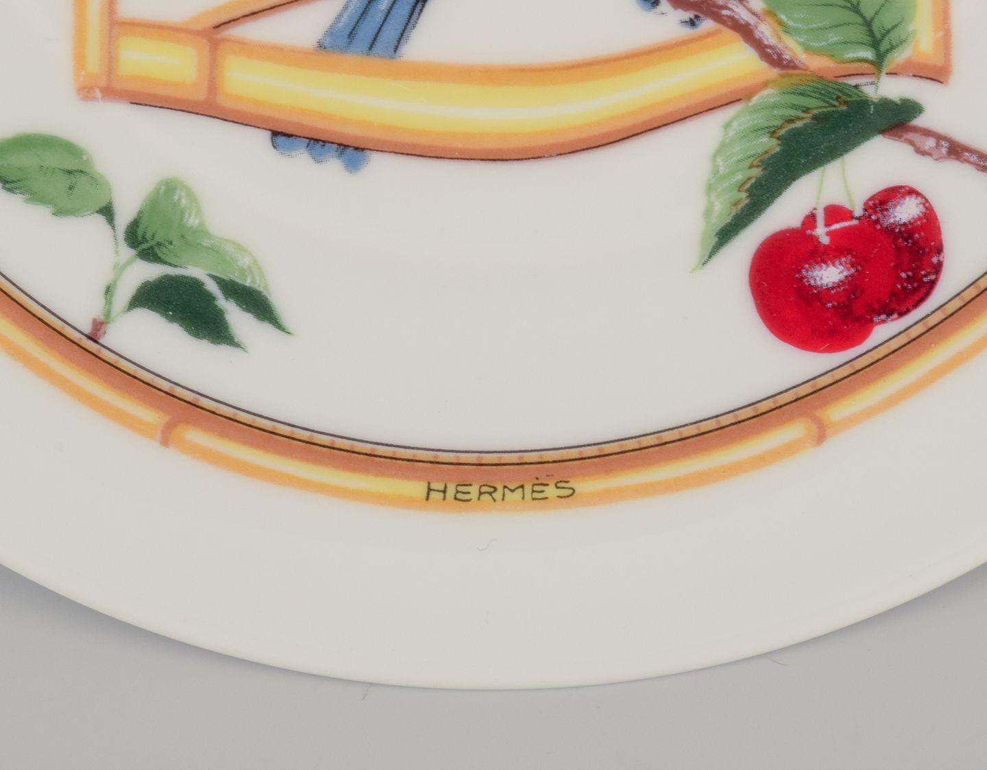 Hermès, Frankrig. To porcelænstallerkner med fuglemotiver. Fra ”L’etrier Perchoir” serien. Sent 1900-tallet. Stemplet. Perfekt stand. Mål: D 16,5 cm. x H 2,0 cm.