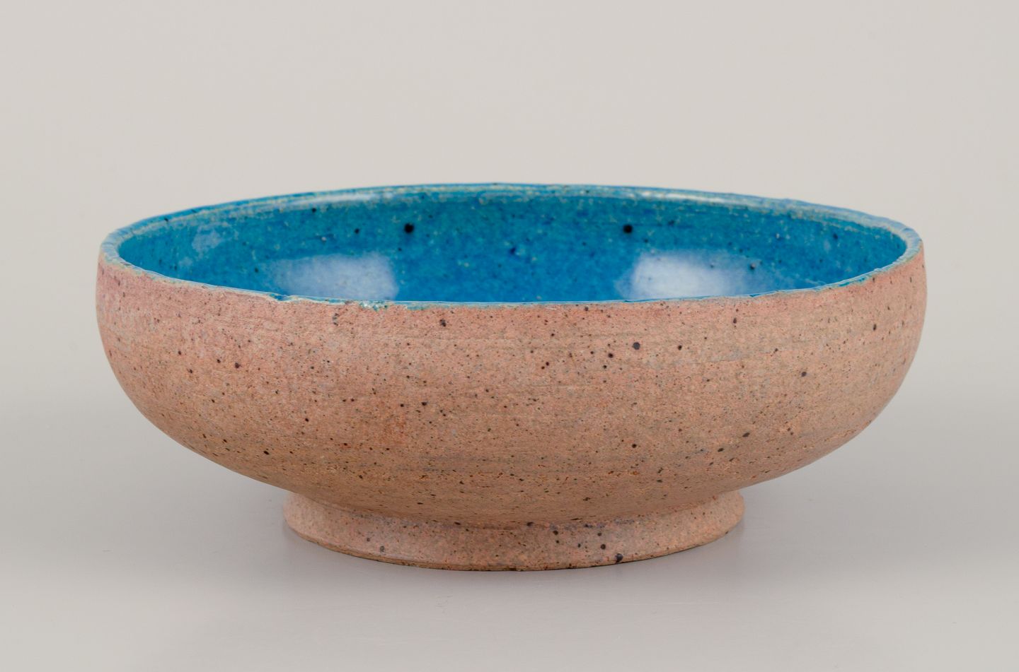 Nils Kähler (1906-1979) for Kähler. To keramikskåle. Uglaseret og turkis glasur. Håndglaseret.