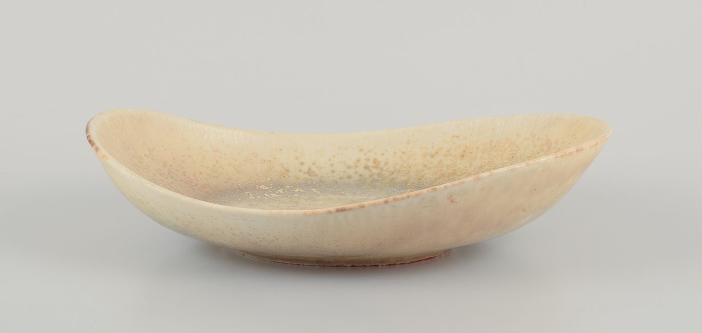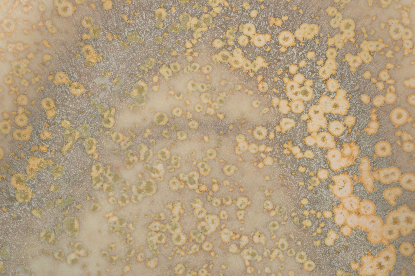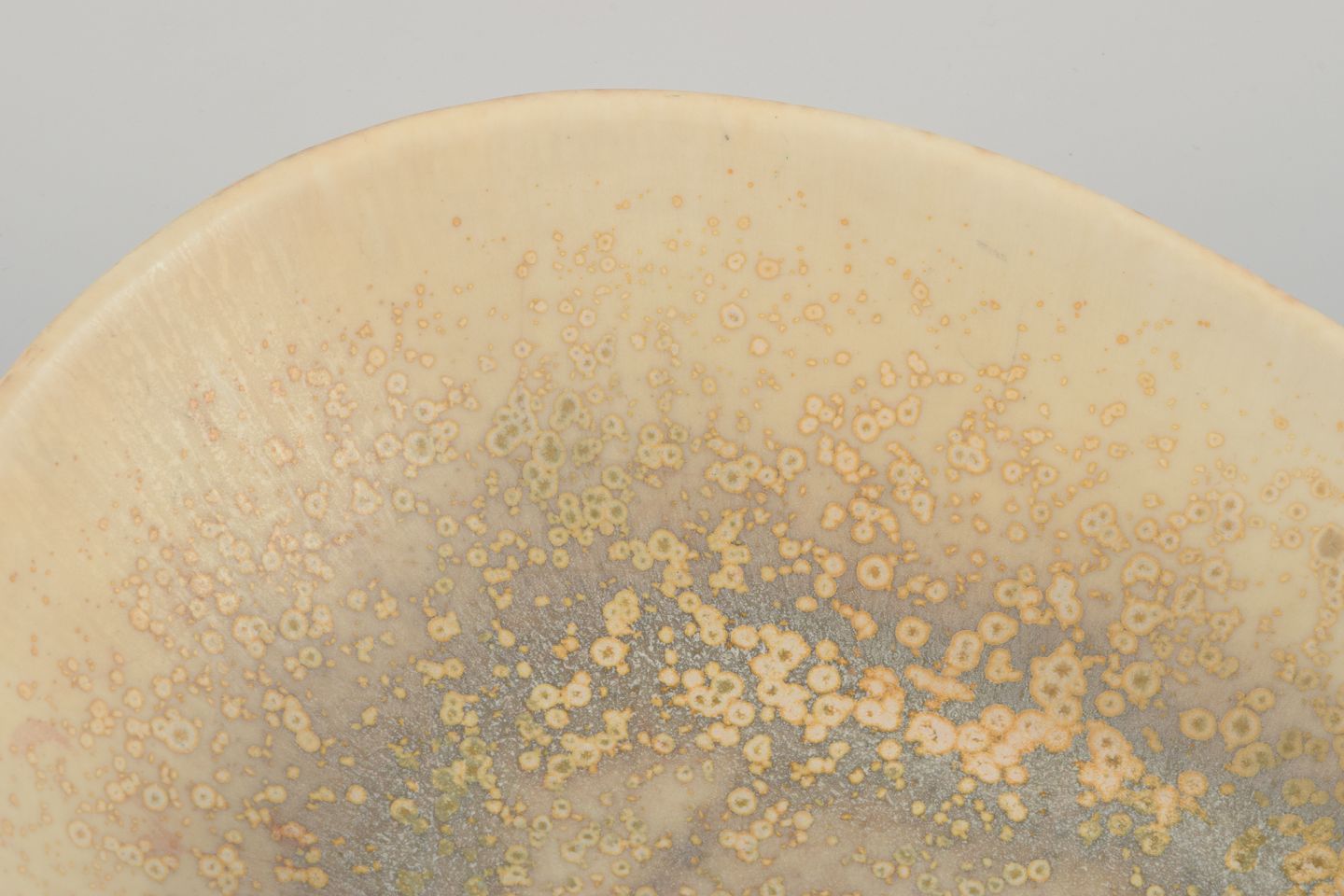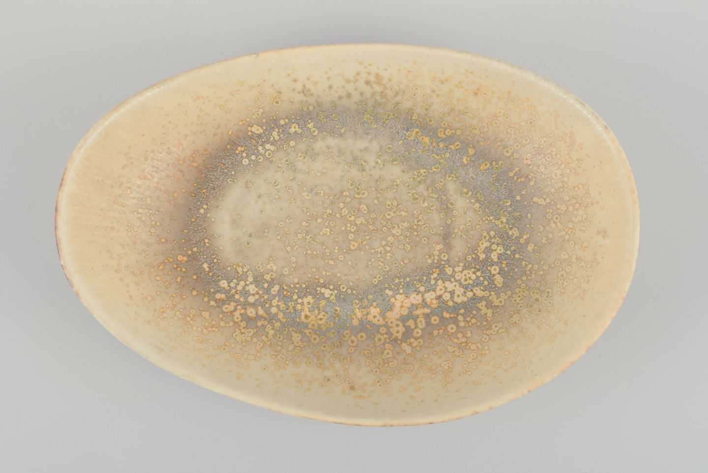 I flot stand, med naturlige krakeleringer i bunden af skålen.