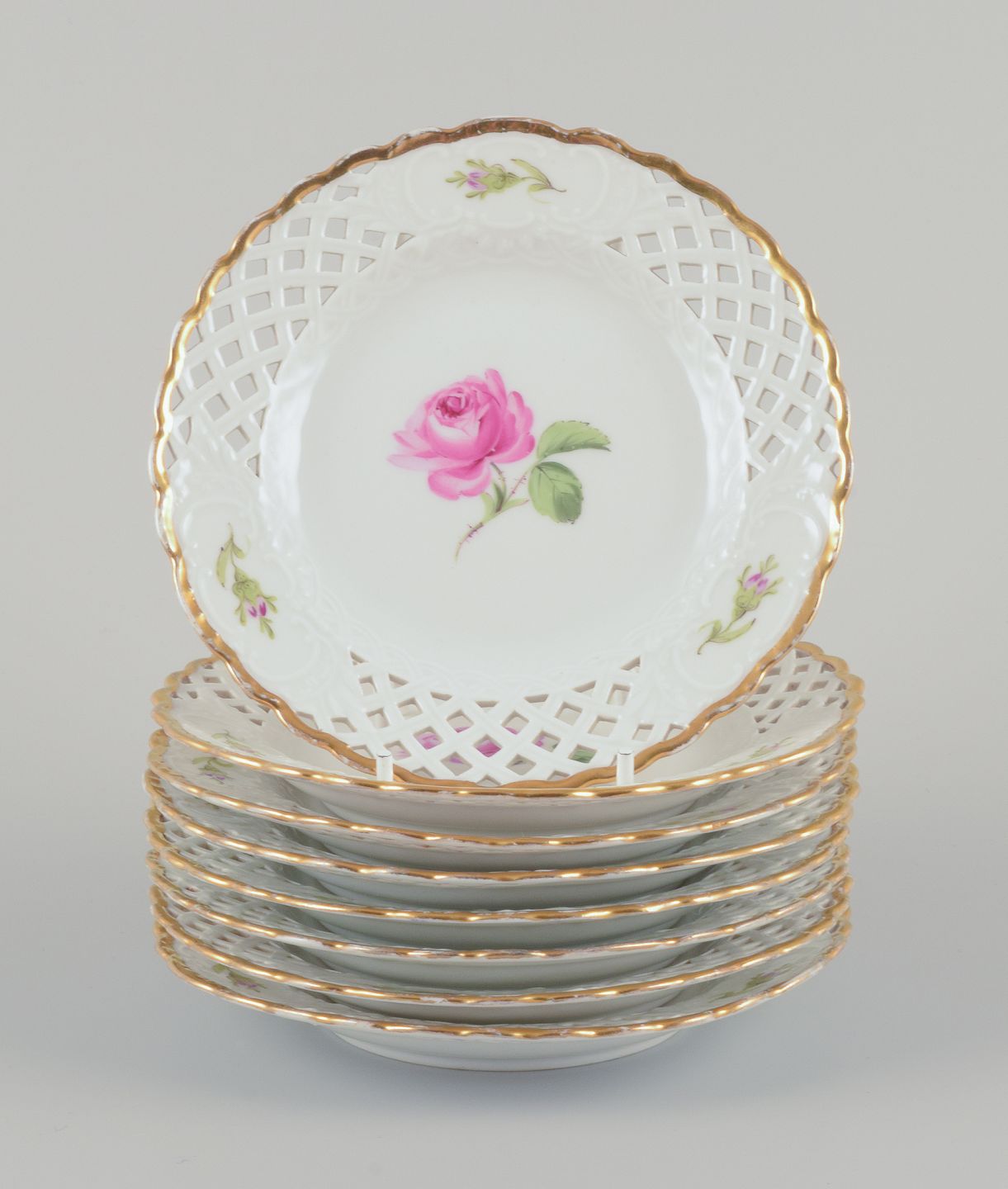 Et sæt på otte ”Pink Rose” gennembrudte tallerkner.