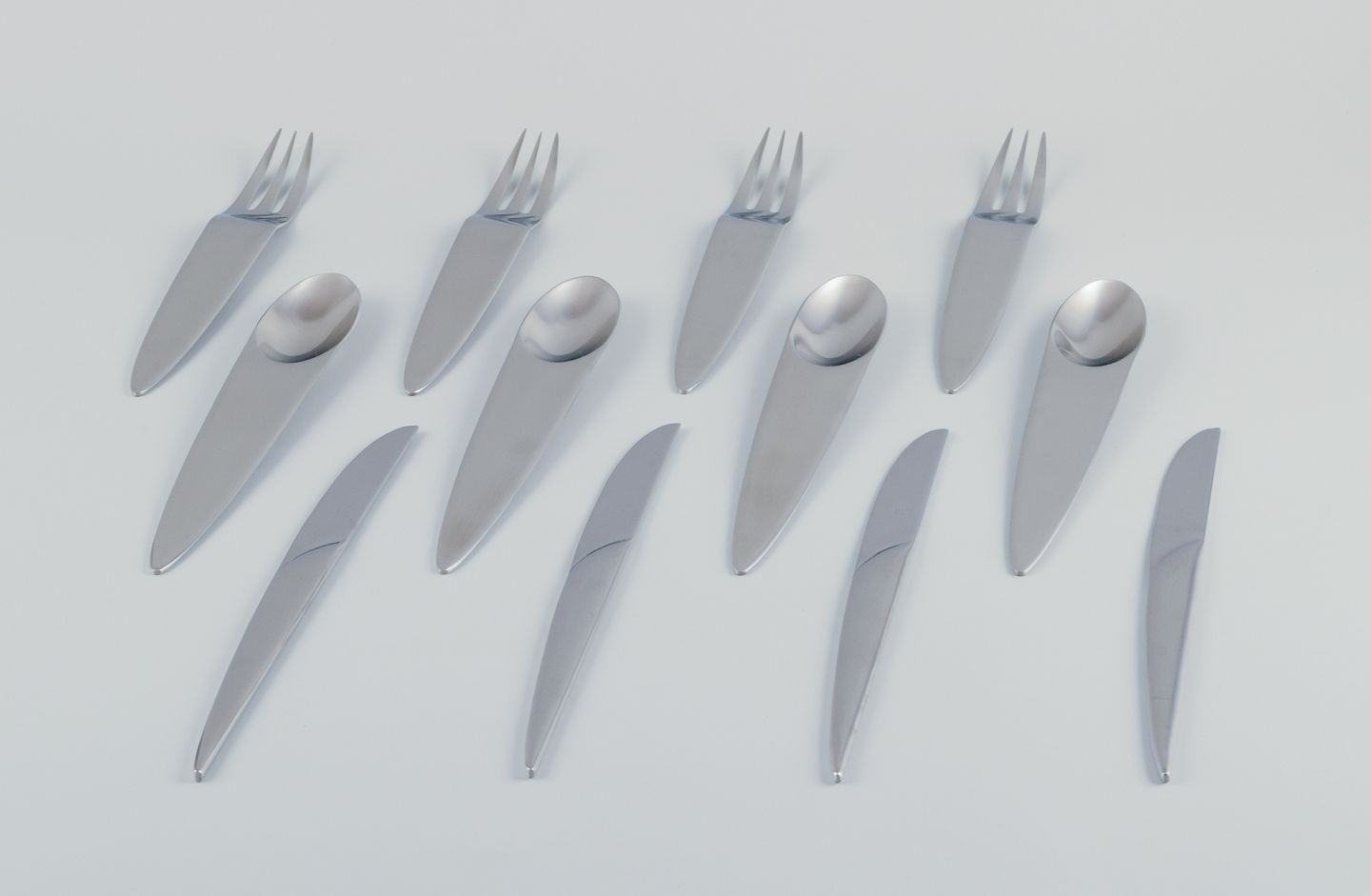 Middagsservice til fire personer bestående af fire middagsknive, fire middagsgafler og fire spiseskeer.