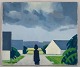 K. Westerberg alias Knud Horup (1926-1973), Danish artist. Oil on canvas. Modernist style. Landscape with figure. 1970s. Signed. Perfect condition. Dimensions: W 60.0 cm x H 50.0 cm.