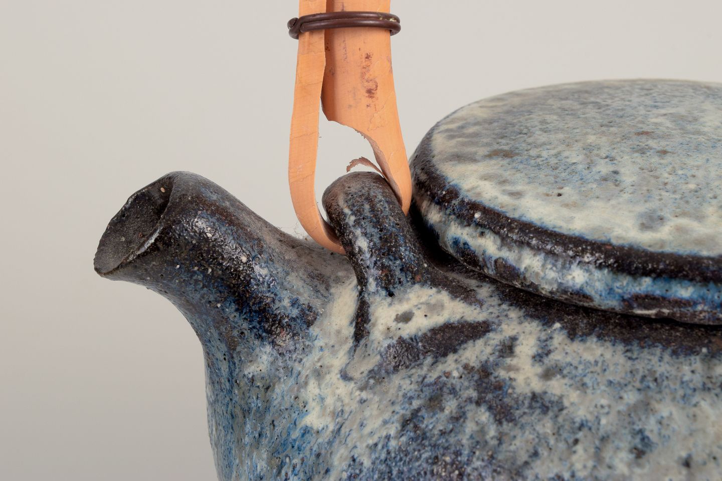 Unika tekande i keramik, raku teknik, flydende lava glasur i blågrå toner.