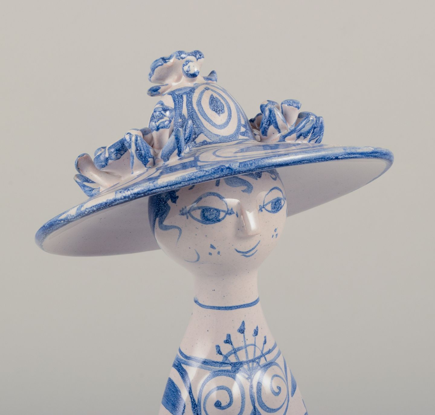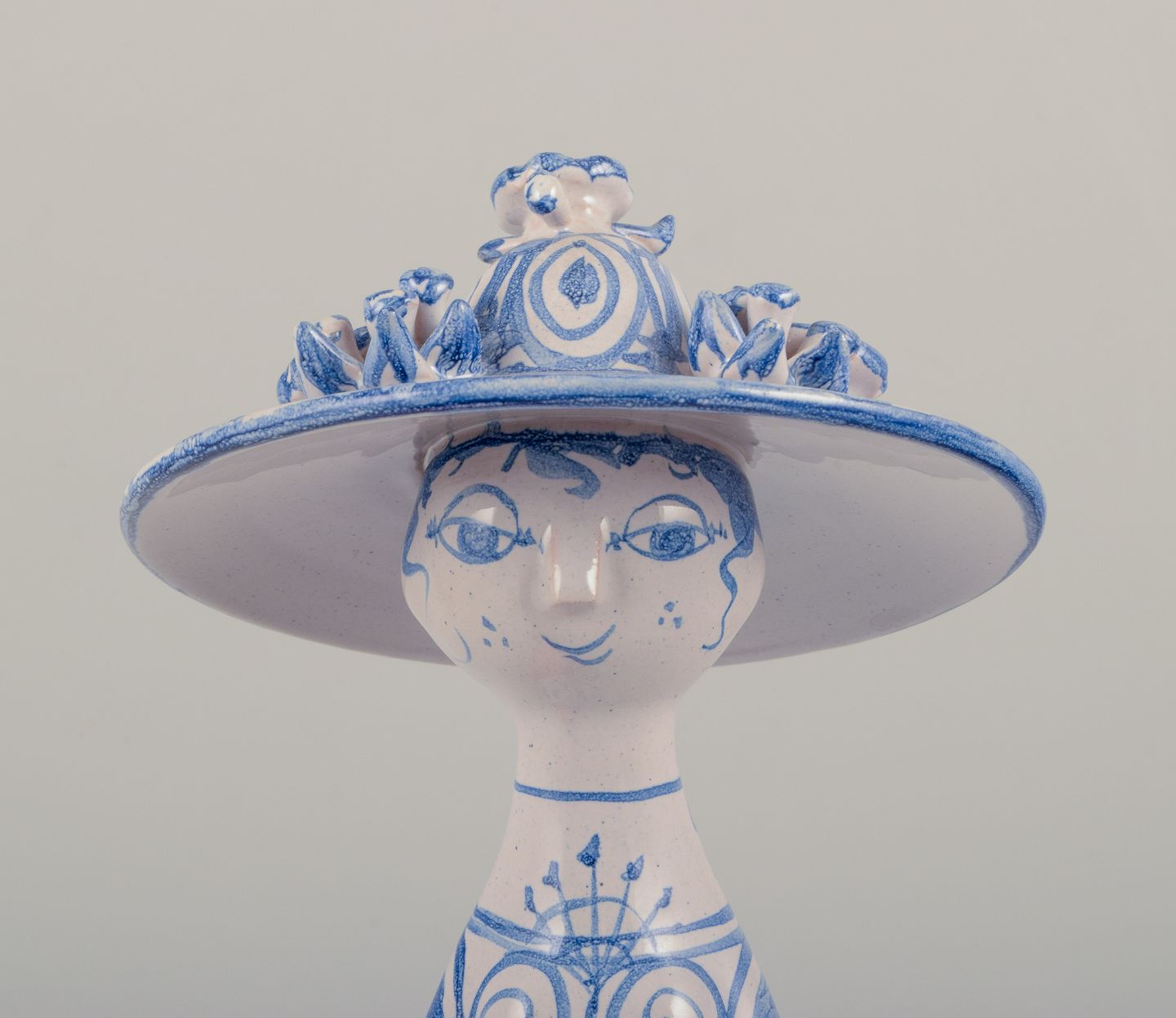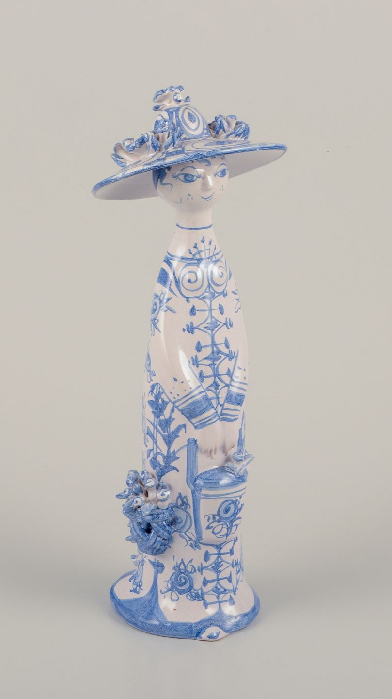 Unik figur i håndmalet keramik. "Sommer" i blå.