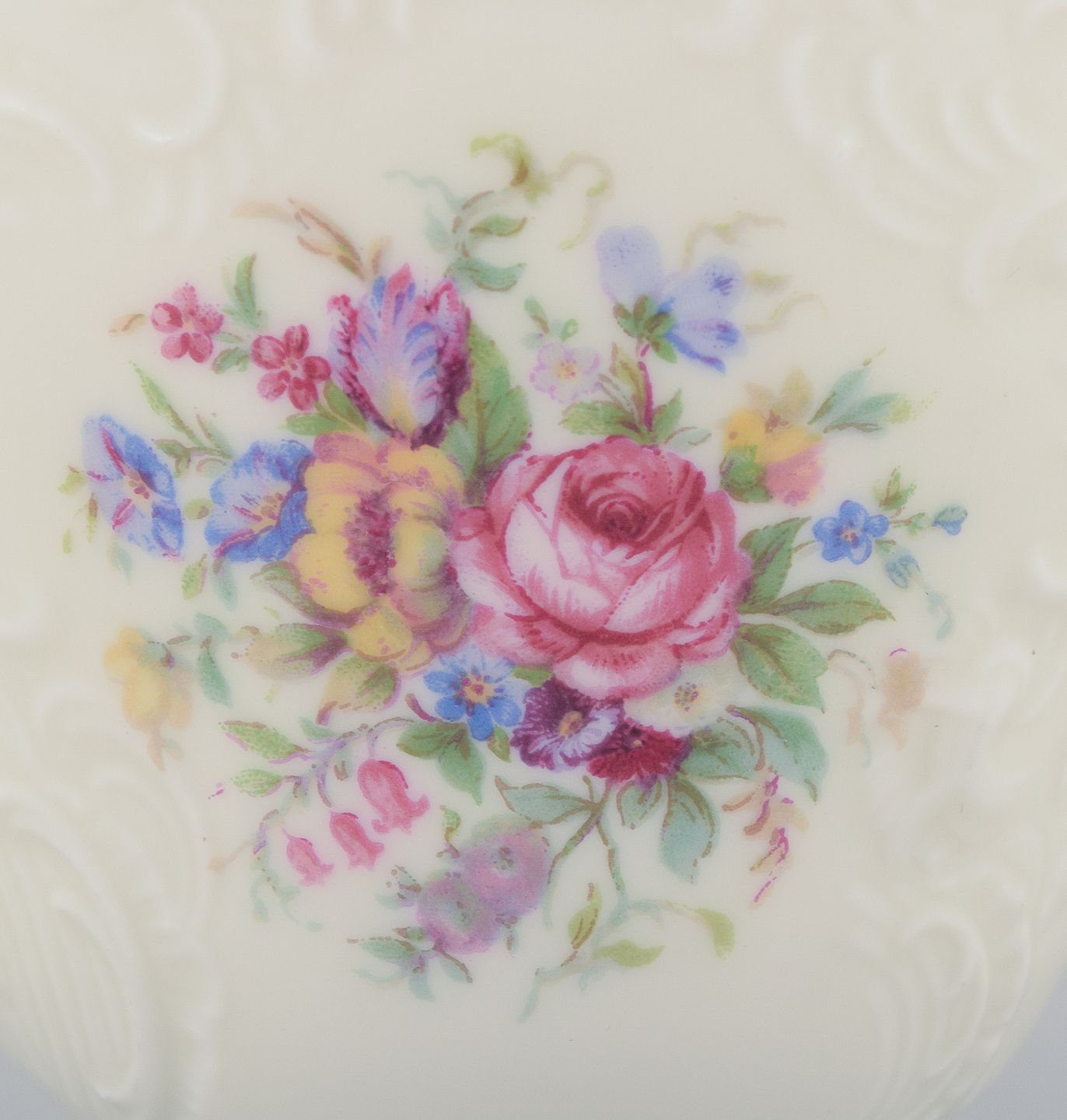 Dekoreret med polykrome blomstermotiver.