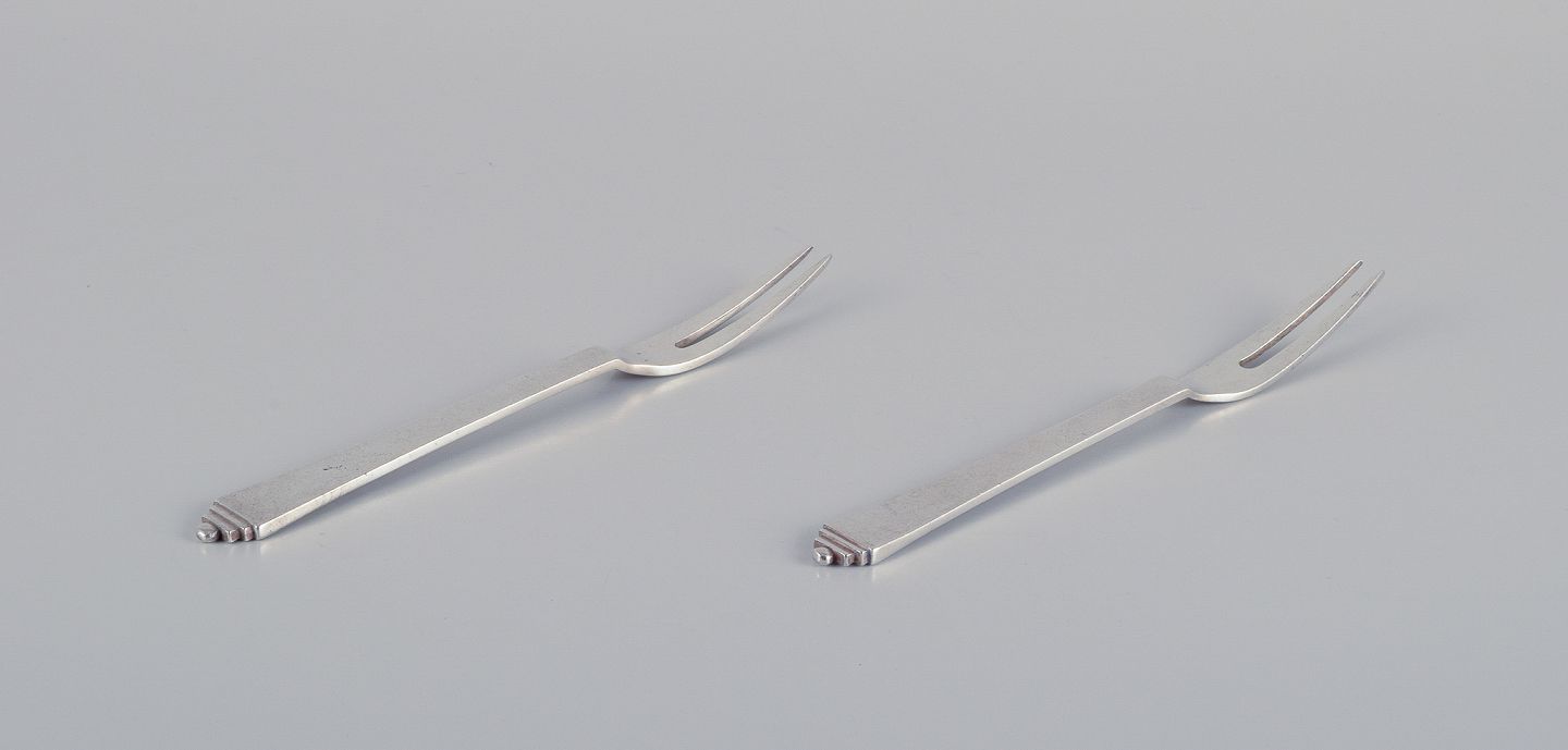 Georg Jensen Pyramide. To pålægsgafler i sterlingsølv. 1915-1932 stempel samt 1933-1944 stempel. Perfekt stand. Mål: L 14,0 cm.