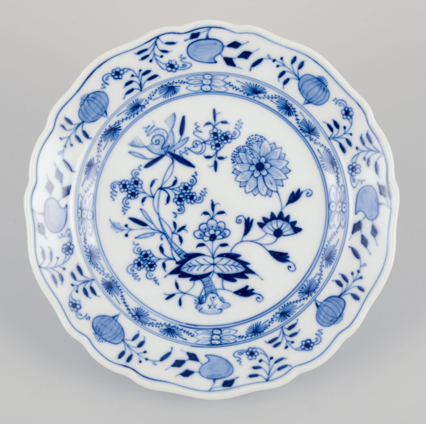 Meissen, Tyskland. Løgmønstret. Et sæt på syv tallerkner. Håndmalet i blåt. Ca. 1900. Stemplet. Perfekt stand. Tredje sortering. Mål: D 17,5 cm. x H 2,5 cm.