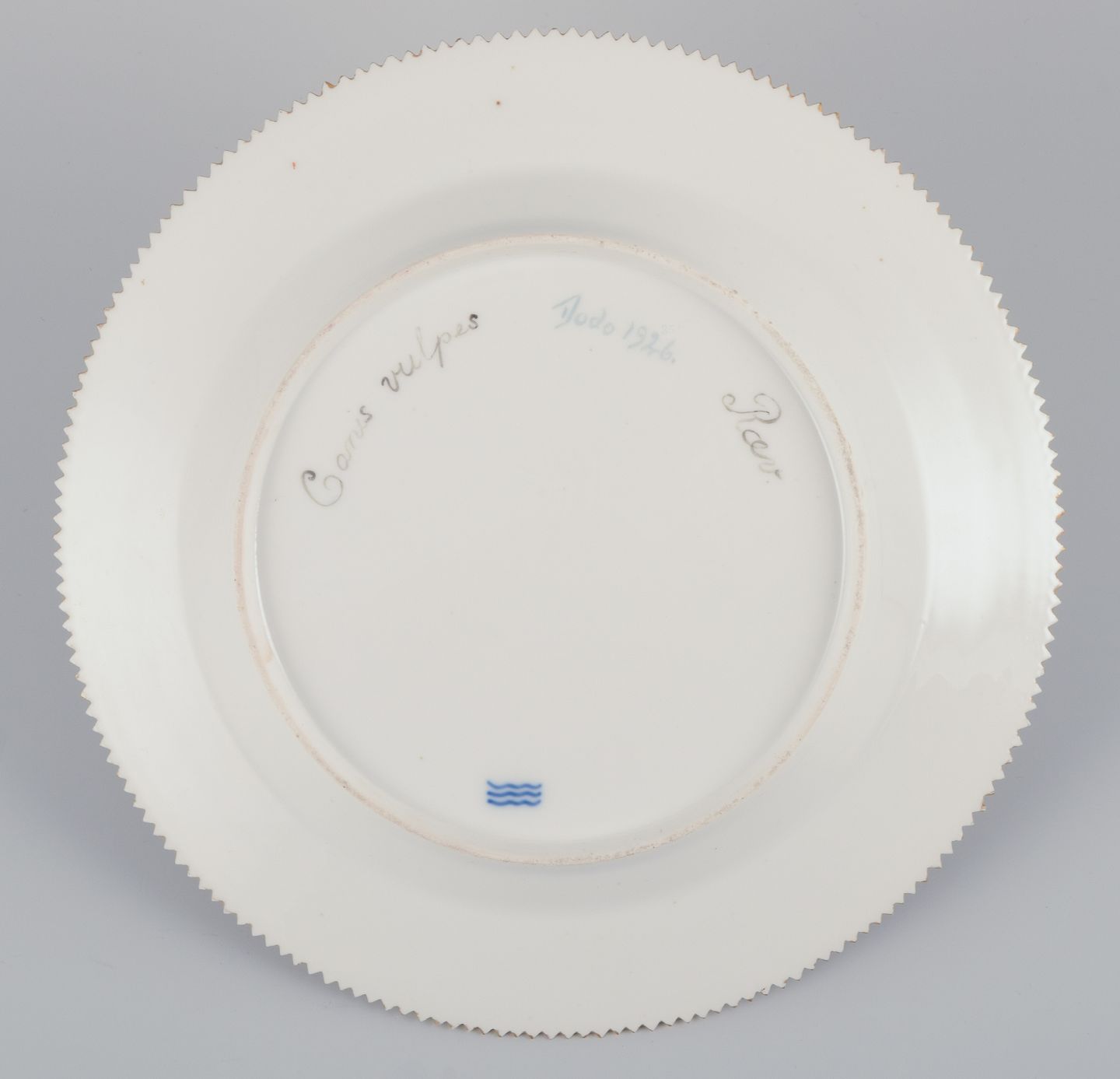 Royal Copenhagen Fauna Danica, hjemmedekoreret middagstallerken med motiv af ræv. Håndmalet. Datering: 1926 Signeret Dodo. Perfekt stand. Anden sortering. Mål: D 25,0 cm.