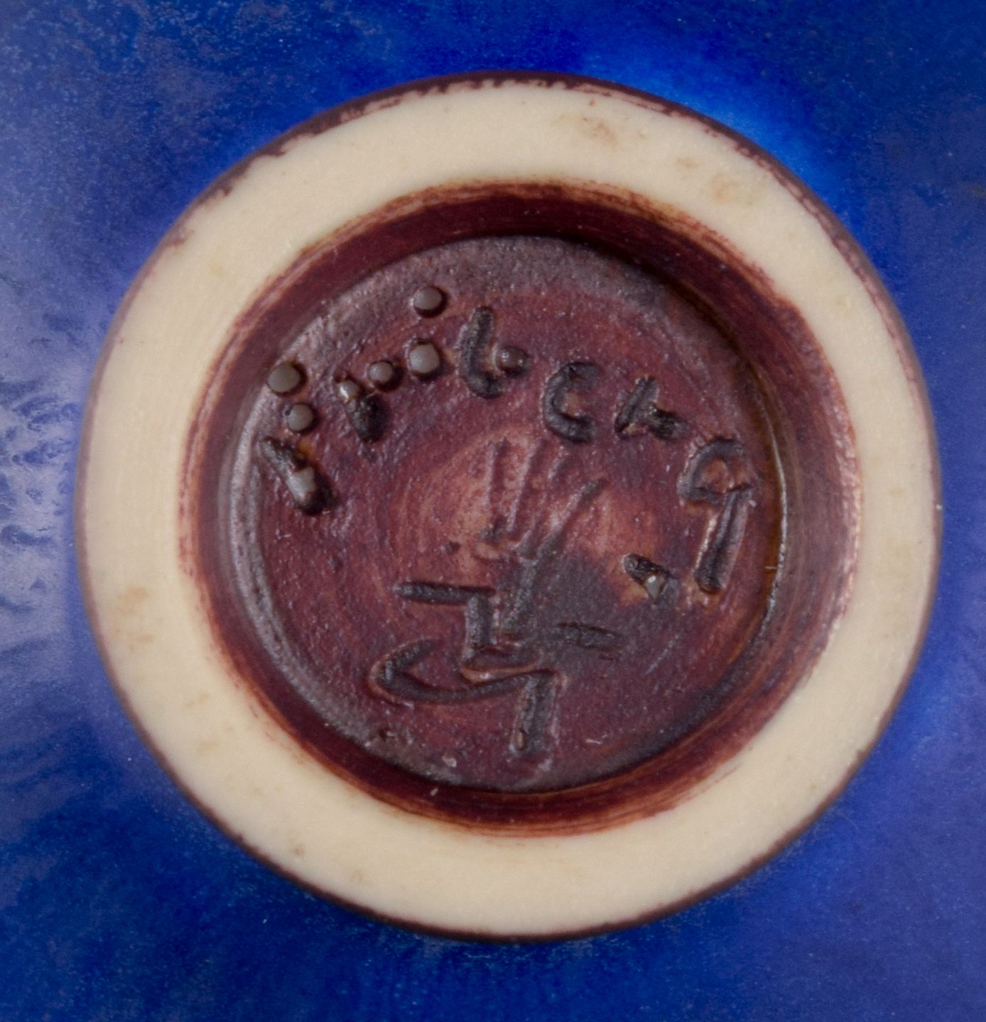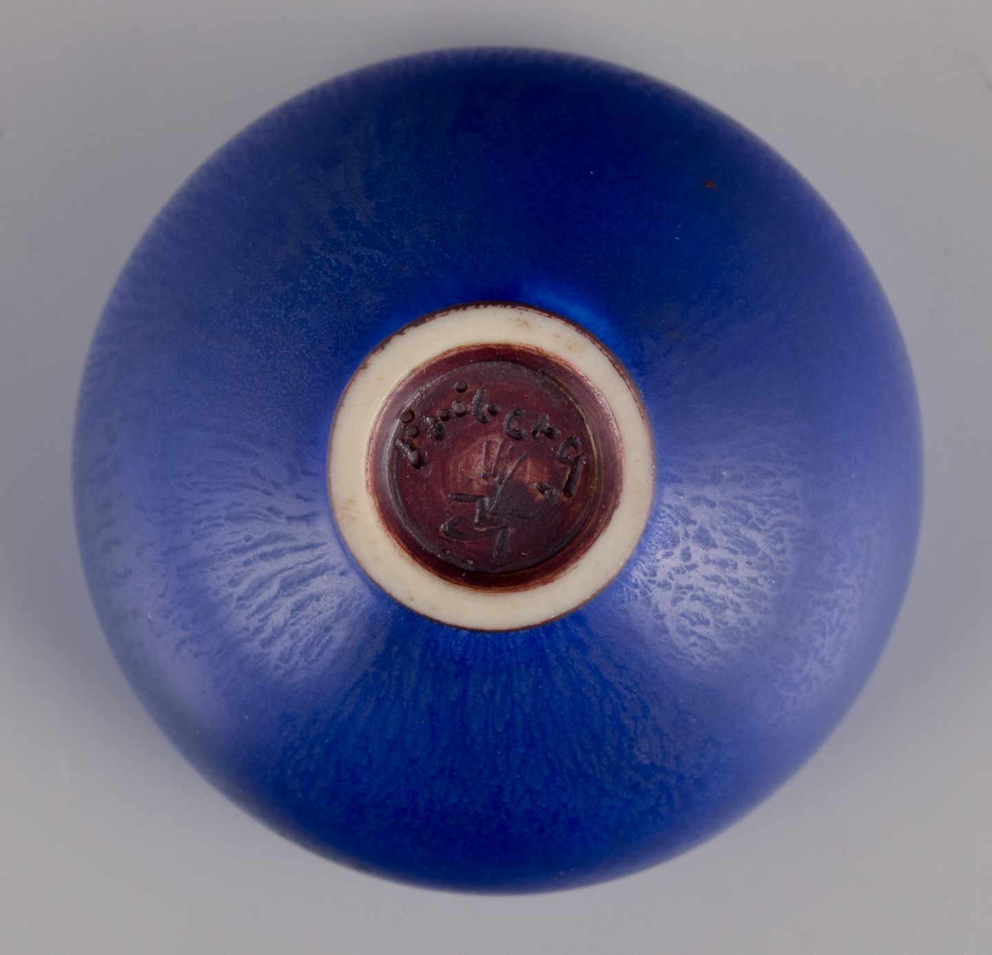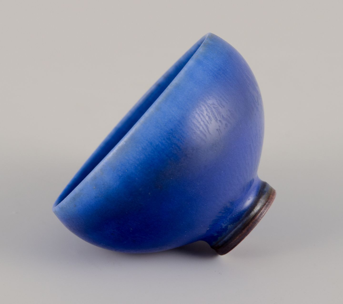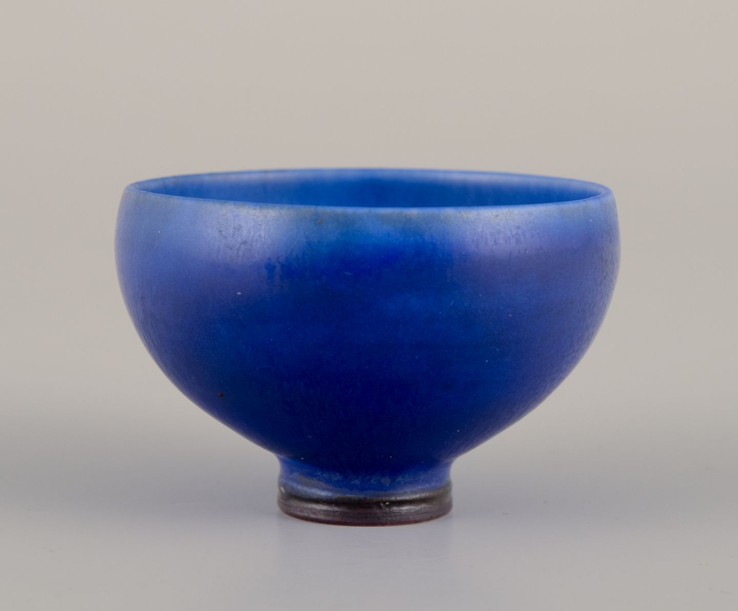 Berndt Friberg (1899-1981) for Gustavsberg Studiohand. Miniatureskål i glaseret keramik. Glasur i blå nuancer. Midt 1900-tallet. I perfekt stand. Signeret. Mål: D 4,0 cm. x H 2,7 cm.