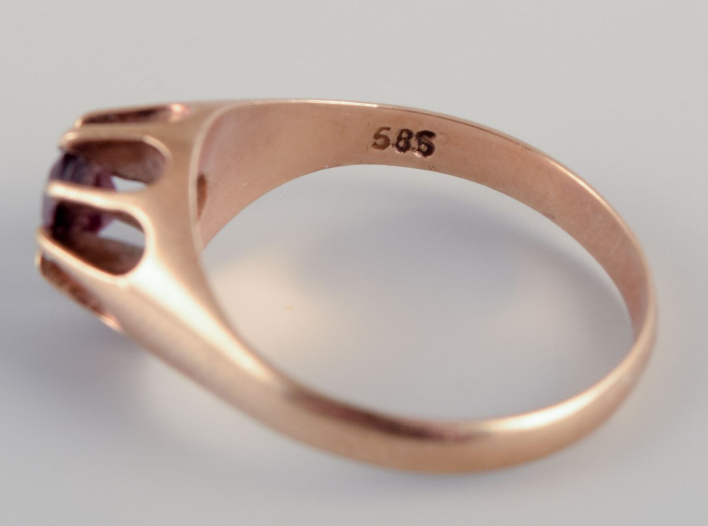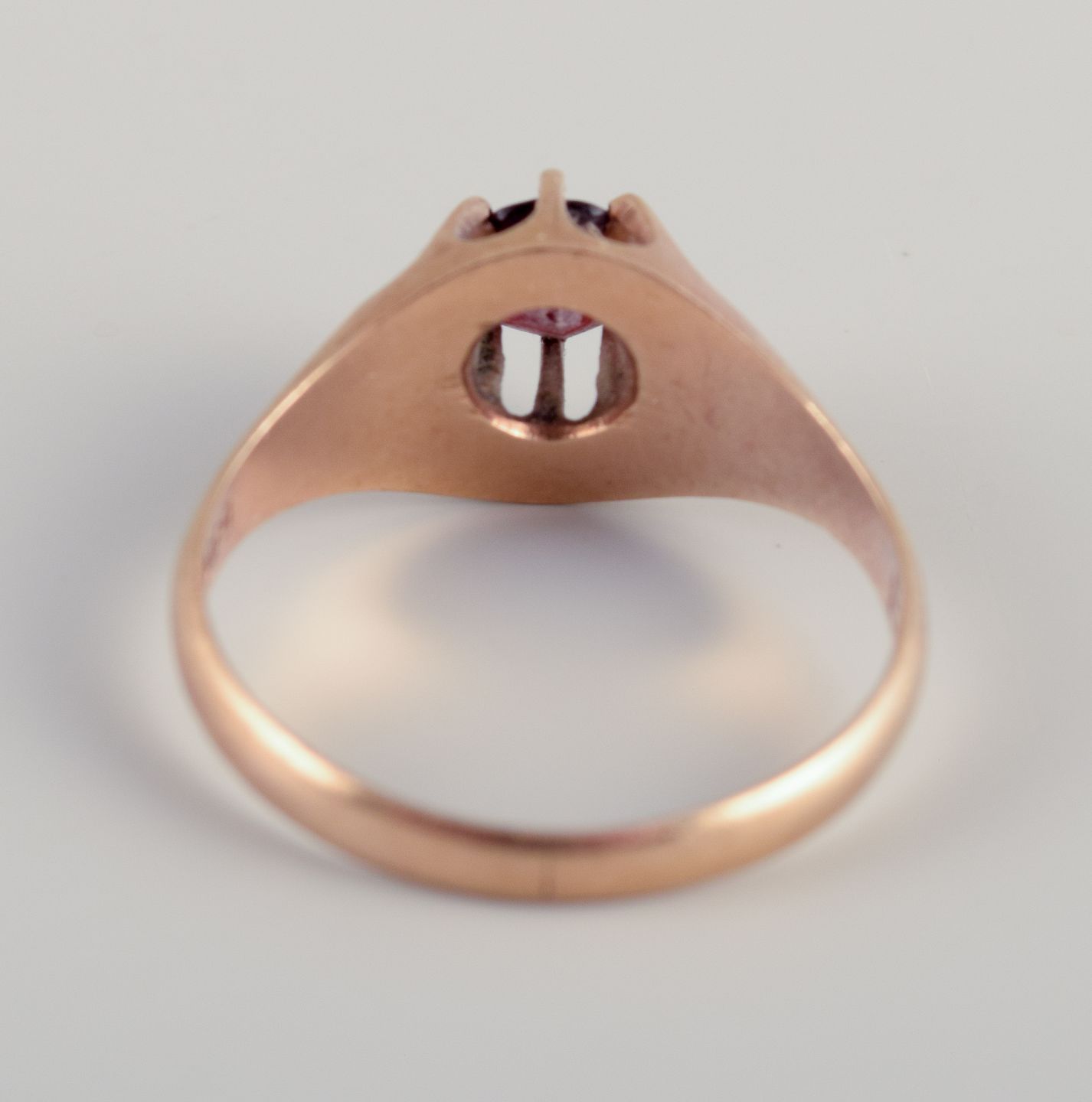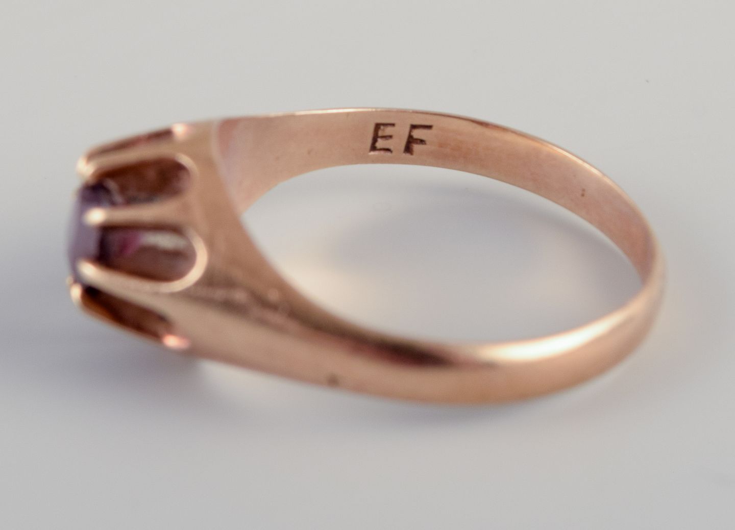 Dansk guldsmed. 14 karat Art Deco guldring prydet med bordeauxfarvet halvædelsten.