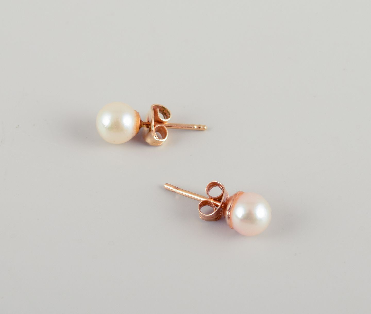 Swedish goldsmith. A pair of classic ear studs in 18 karat gold adorned with cultured pearls.