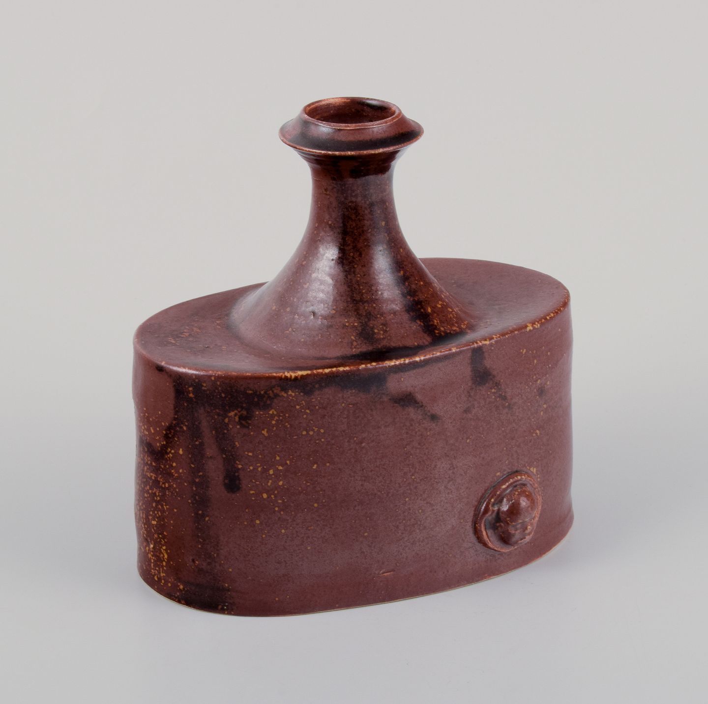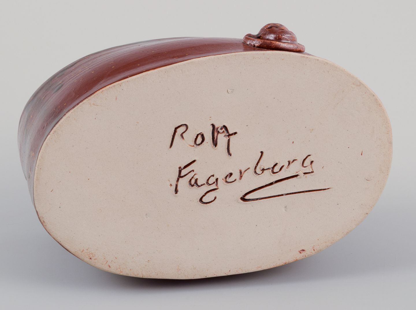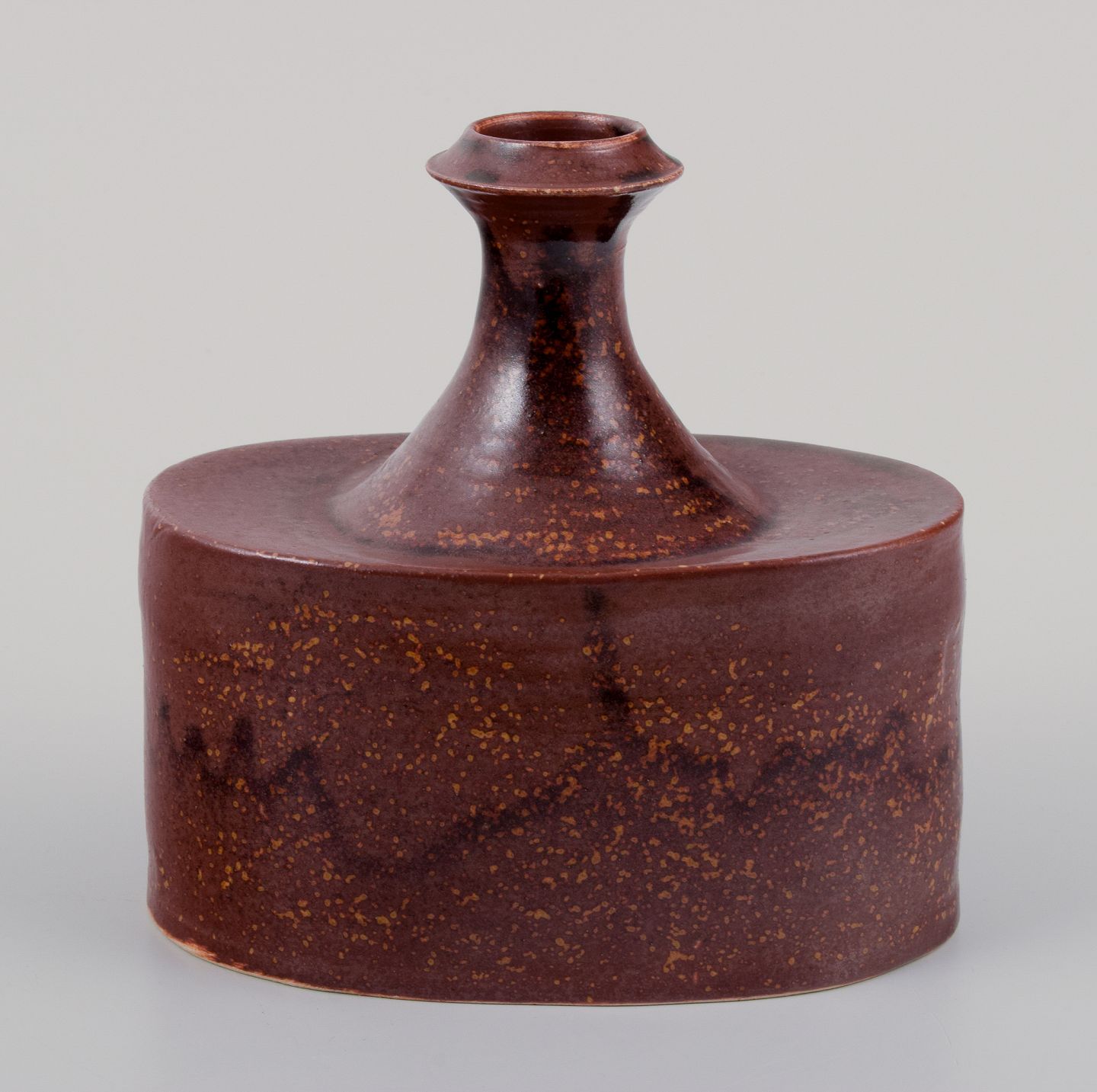 Rolf Fagerberg (1934-2008). Svensk keramiker. Unika keramikvase. Glasur i brune nuancer. Sent 1900-tallet. Signeret. Perfekt stand. Mål: B 14,5 cm. x H 14,0 cm.