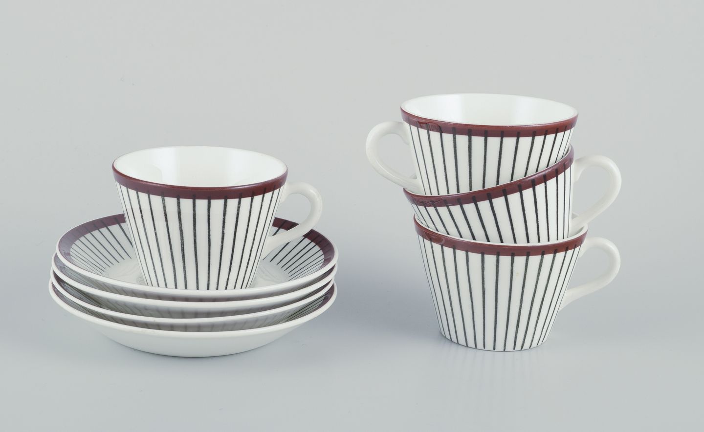 A set of four ‘Spisa Ribb’ coffee cups and saucers in porcelain.