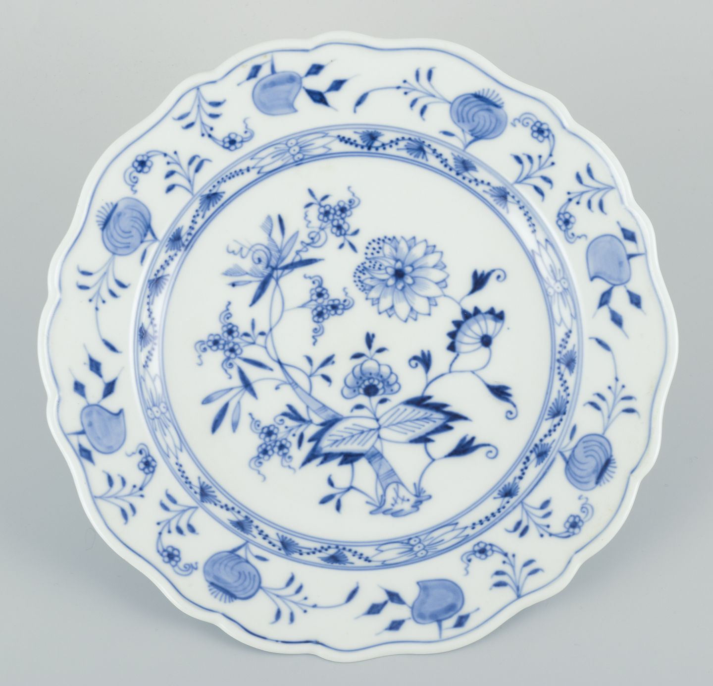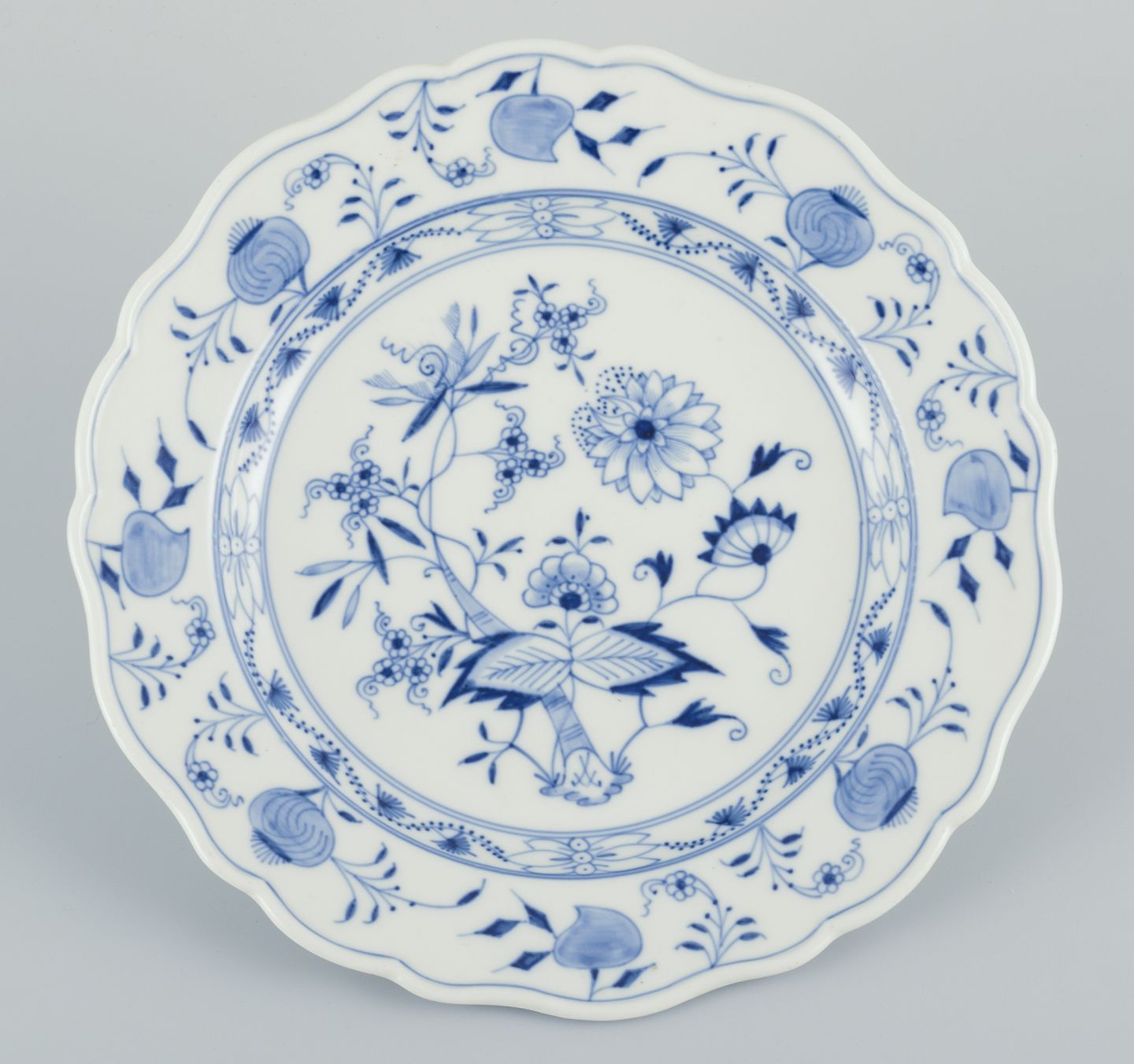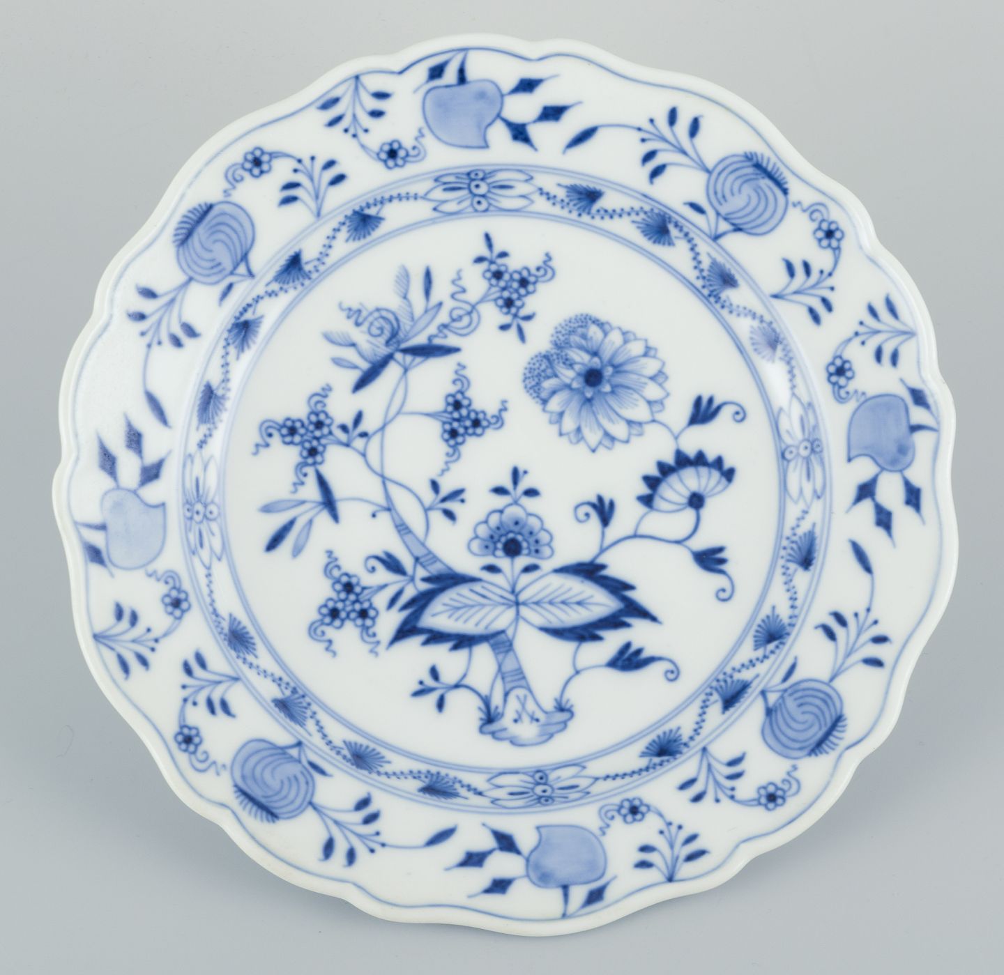 Meissen, Tyskland. Fire løgmønster frokosttallerkener i blåmalet porcelæn. Håndmalet. Ca. 1900. Stemplet. Første sortering. Perfekt stand Mål: D 23,0 cm.