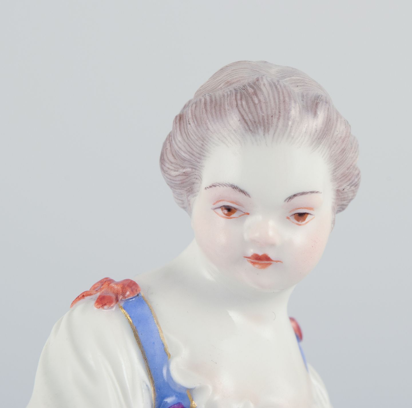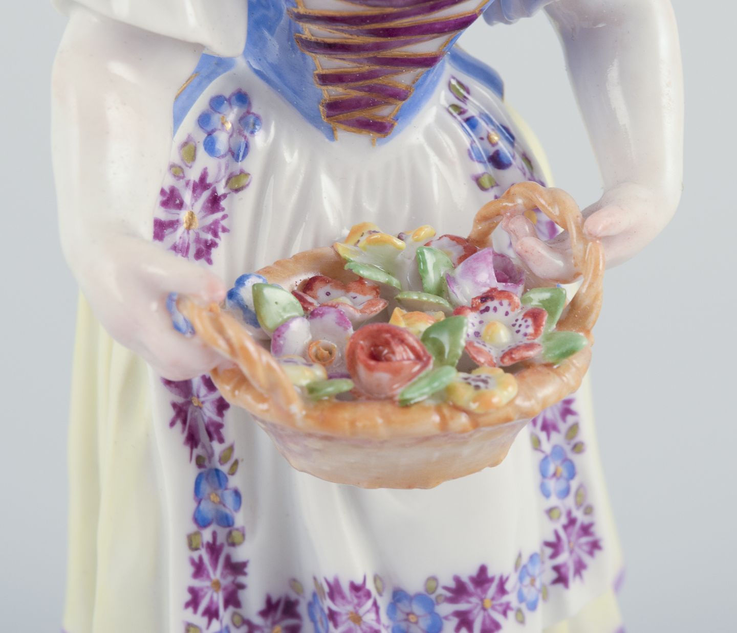 Meissen, Tyskland. Porcelænsfigur af pige med kurv.