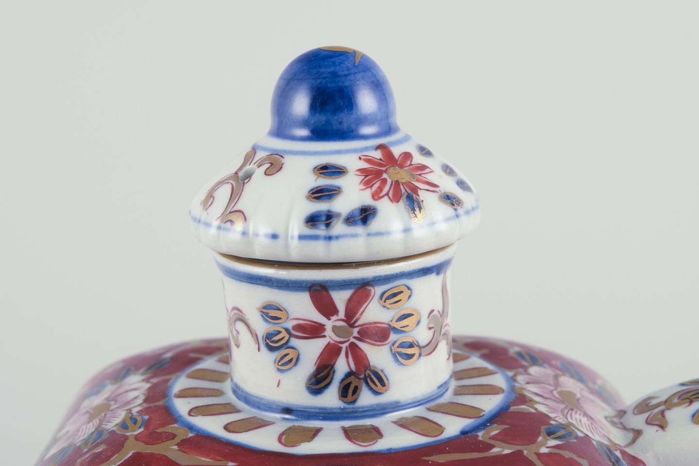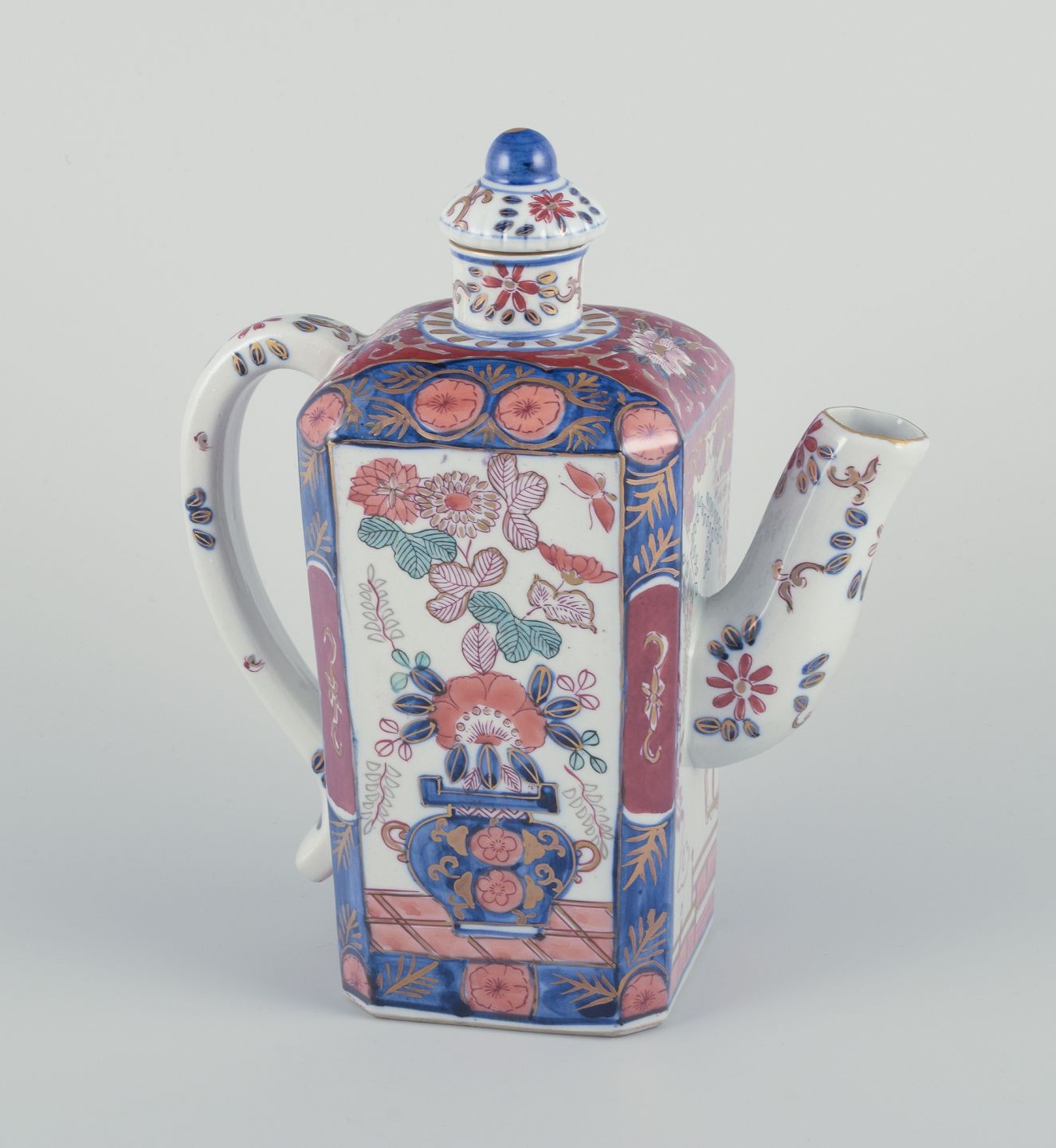 Orientalsk kaffekande af porcelæn. Håndmalet i polykrom glasur. Klassiske motiver. Gulddekoration. 1800-tallet. Ustemplet. Perfekt stand. Mål: H 23,0 cm. x B 20,0 cm.