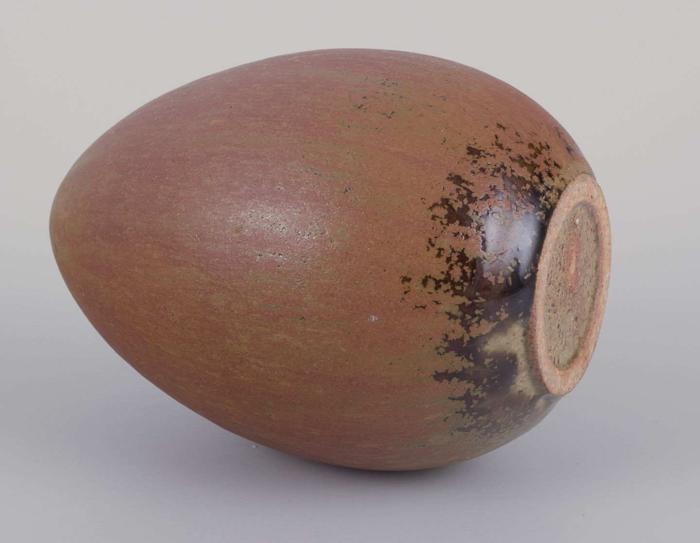 Skulptur i for af æg af håndglaseret keramik.