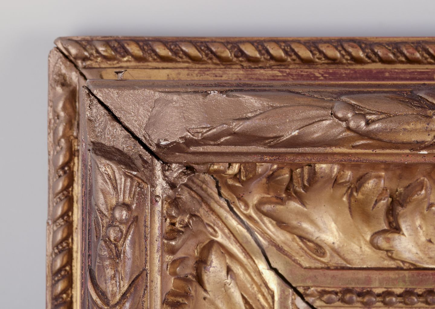 Håndforgyldt træramme med restaurering i ornamentikken.