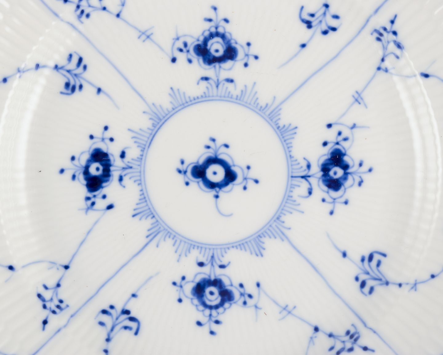 Blue fluted "musselmalet" is a classic blue and white pattern, developed by Royal Copenhagen in 1775.