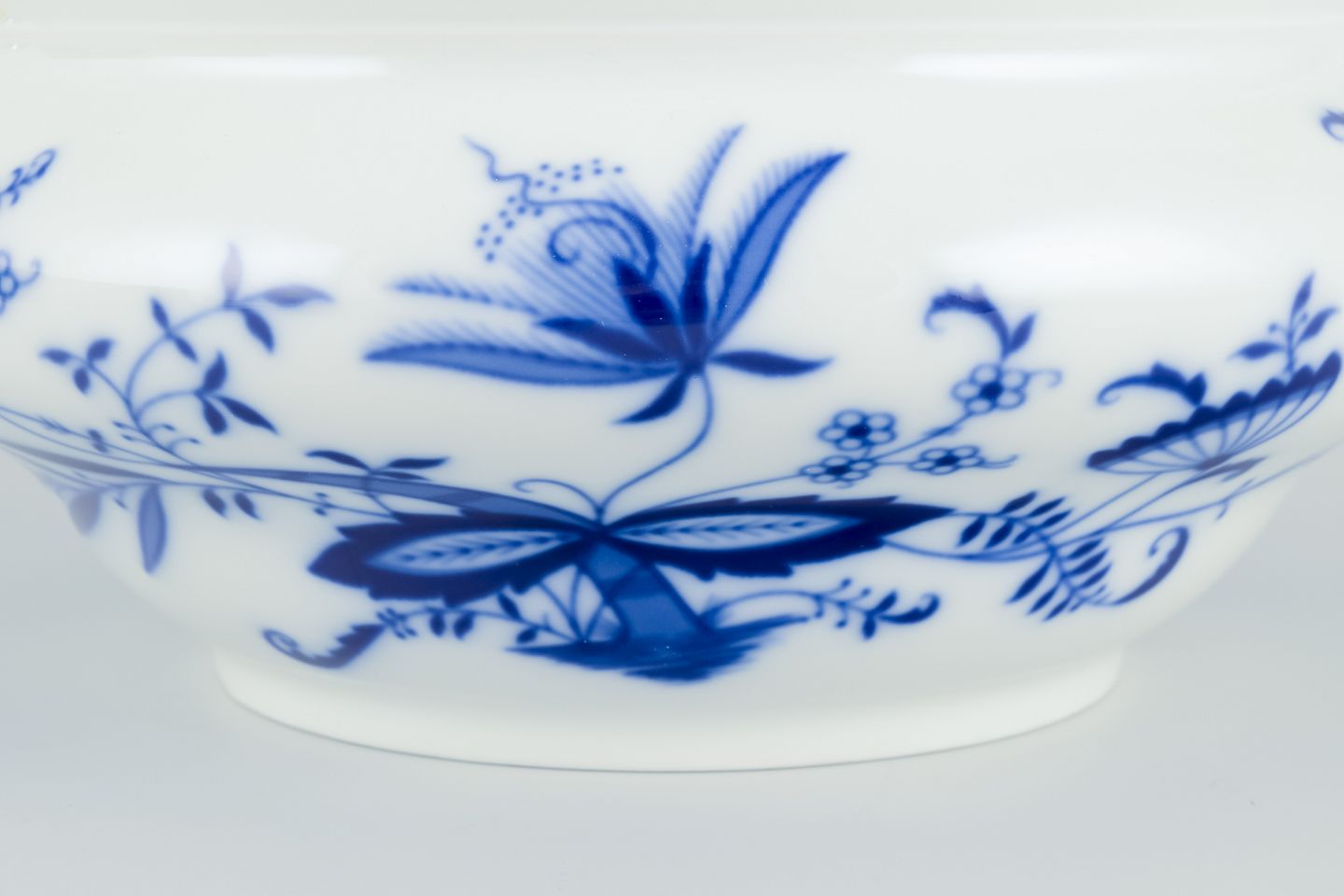 Lågterrin i porcelæn. Løgmønstret dekoration. Ca. Tyskland, 1930/40’erne. Stemplet ”Bavaria Germany” I perfekt stand. Fremstår ubrugte. Mål: D 26,0 cm. x H 19,0 cm.