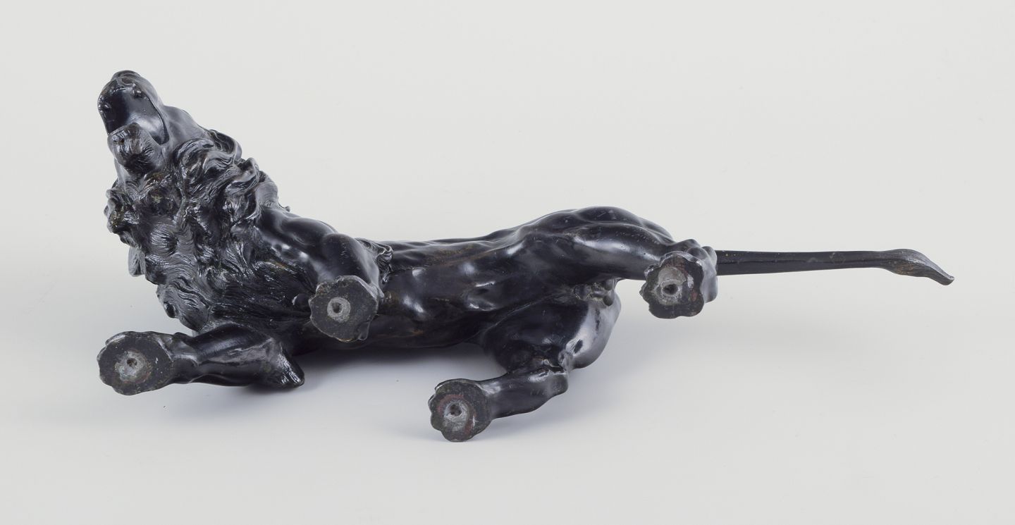 Fremstår i god stand med patina, enkelte mindre revnedannelser, samt huller på bagsiden af alle fire poter. Se foto.