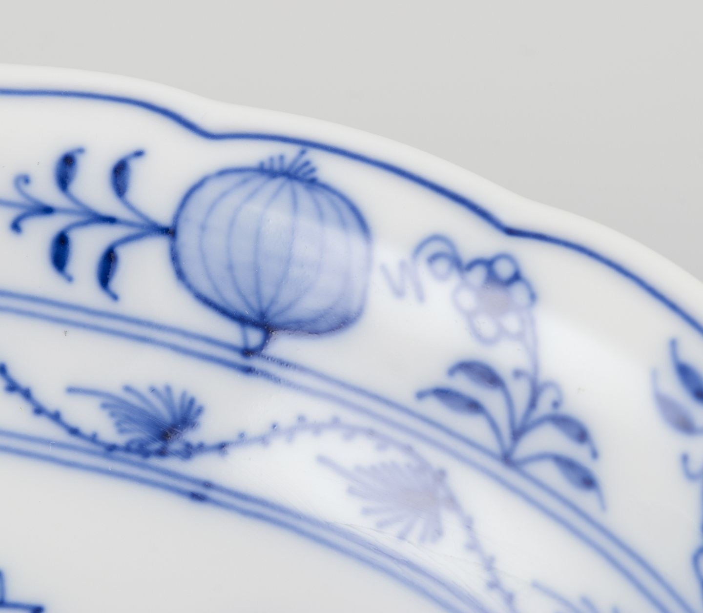 Meissen, Tyskland. To ovale løgmønstrede skåle af porcelæn.