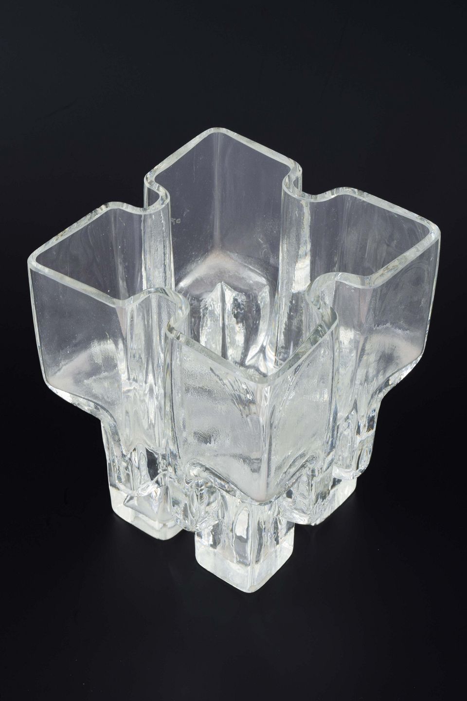 Vase i klart presset glas, model "Paalutalo", med geometrisk, modulopbygget form.