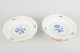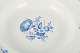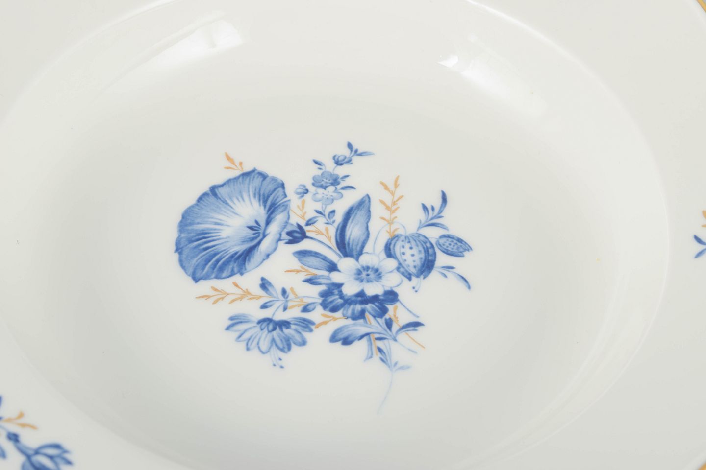 Hand-decorated porcelain with hand-painted blue floral decoration and gilded accents along the rim. Classic scalloped shape.