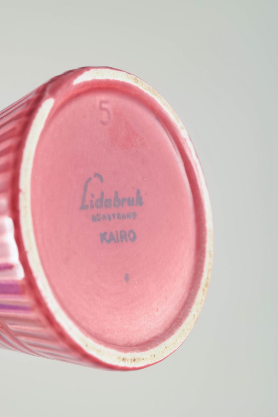 Lidabruk var en del af Rörstrand-koncernen og producerede i 1950’erne-70’erne en række dekorative serier med moderne formsprog og farvestrålende glasurer. Serien Kairo er et karakteristisk eksempel på periodens fascination af geometriske mønstre og arkitektoniske former.