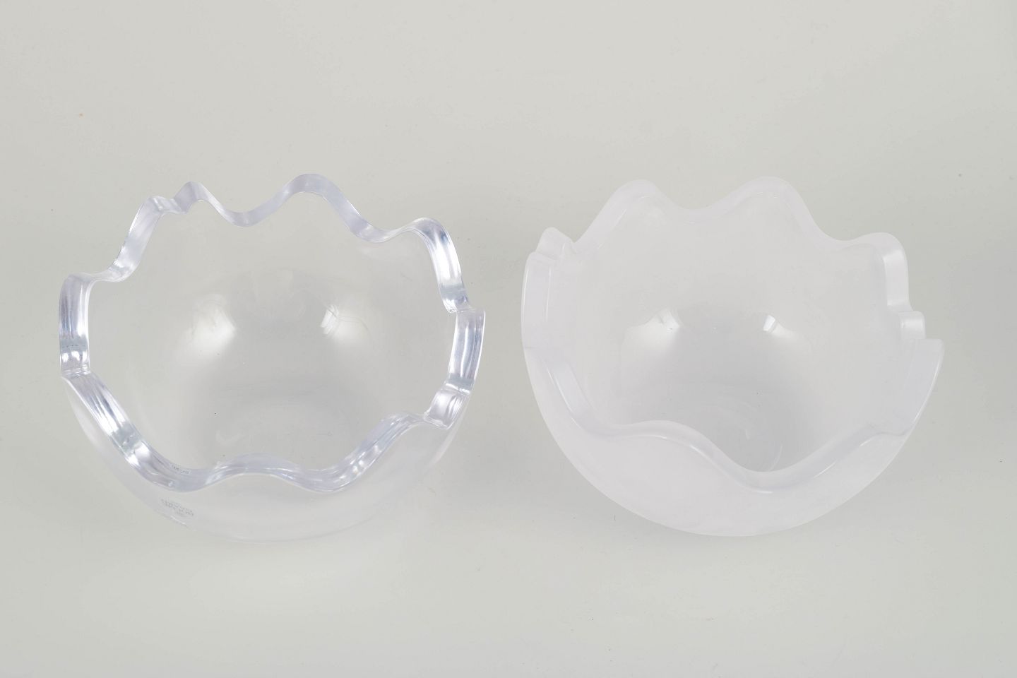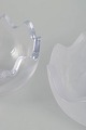 Skulpturelt objekt fra serien Mixed Double, udført i klart håndblæst glas med organisk bølget design. Original æske medfølger.
