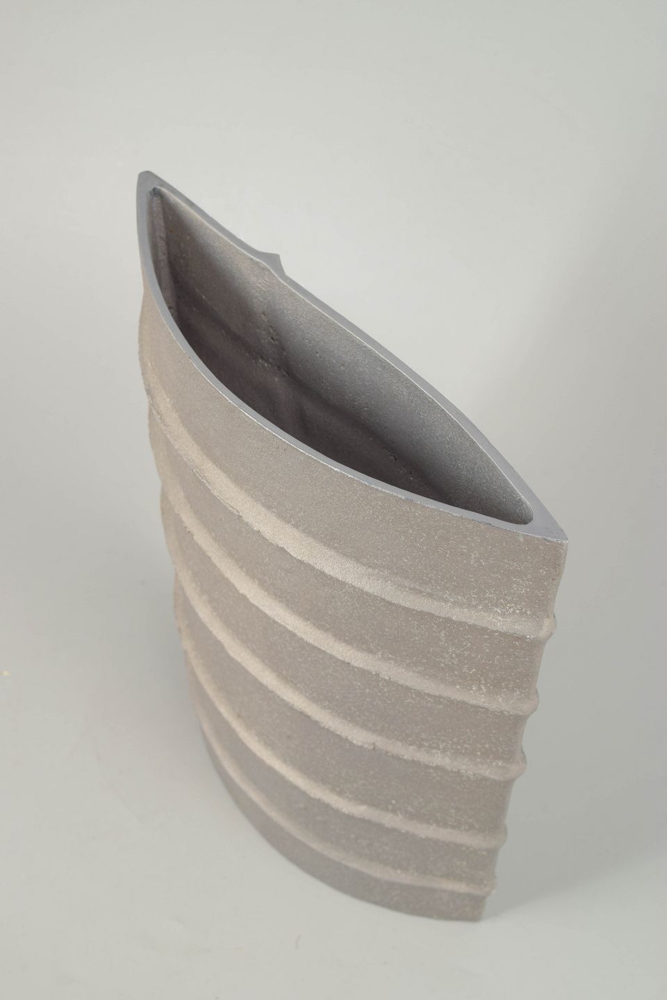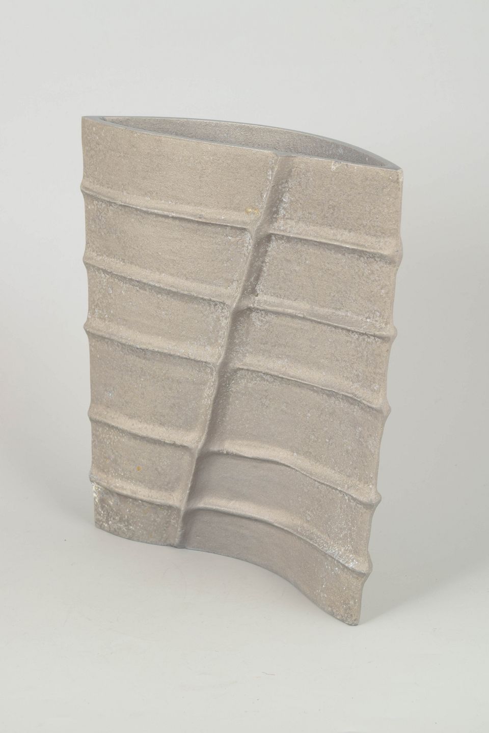Sculptural, asymmetrical form in cast aluminium with pronounced ribbed lines and a raw, industrial surface. Elegant, minimal and characteristic of Mourgue’s experimental approach to form.