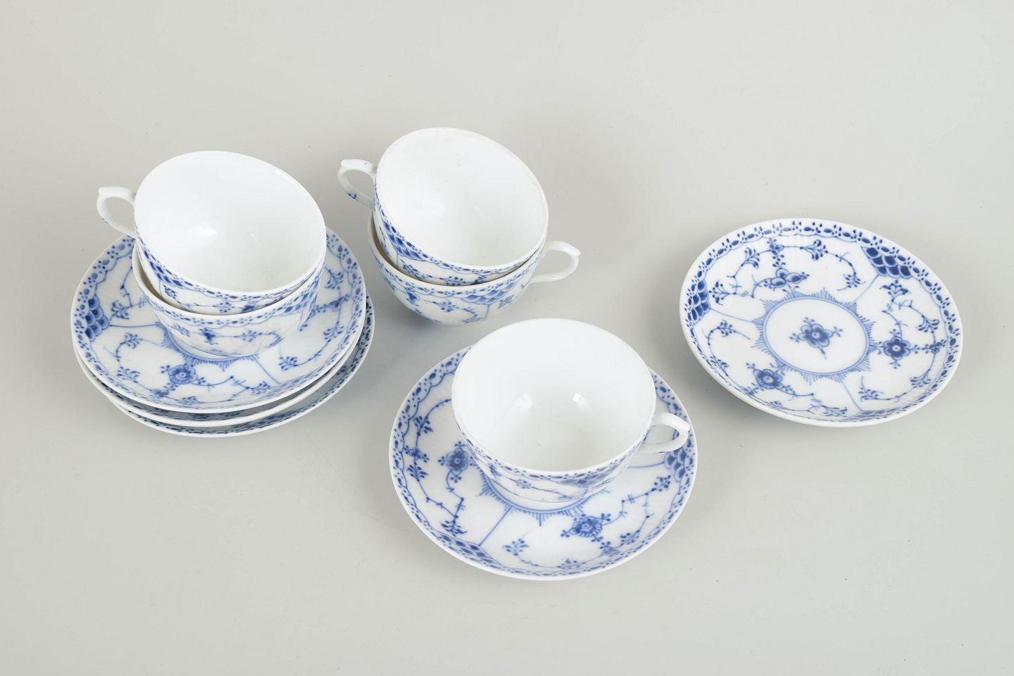 Classic Blue Fluted Half Lace cups in hand-painted porcelain. The refined pattern and delicately modelled forms make this one of Royal Copenhagen’s most timeless designs.