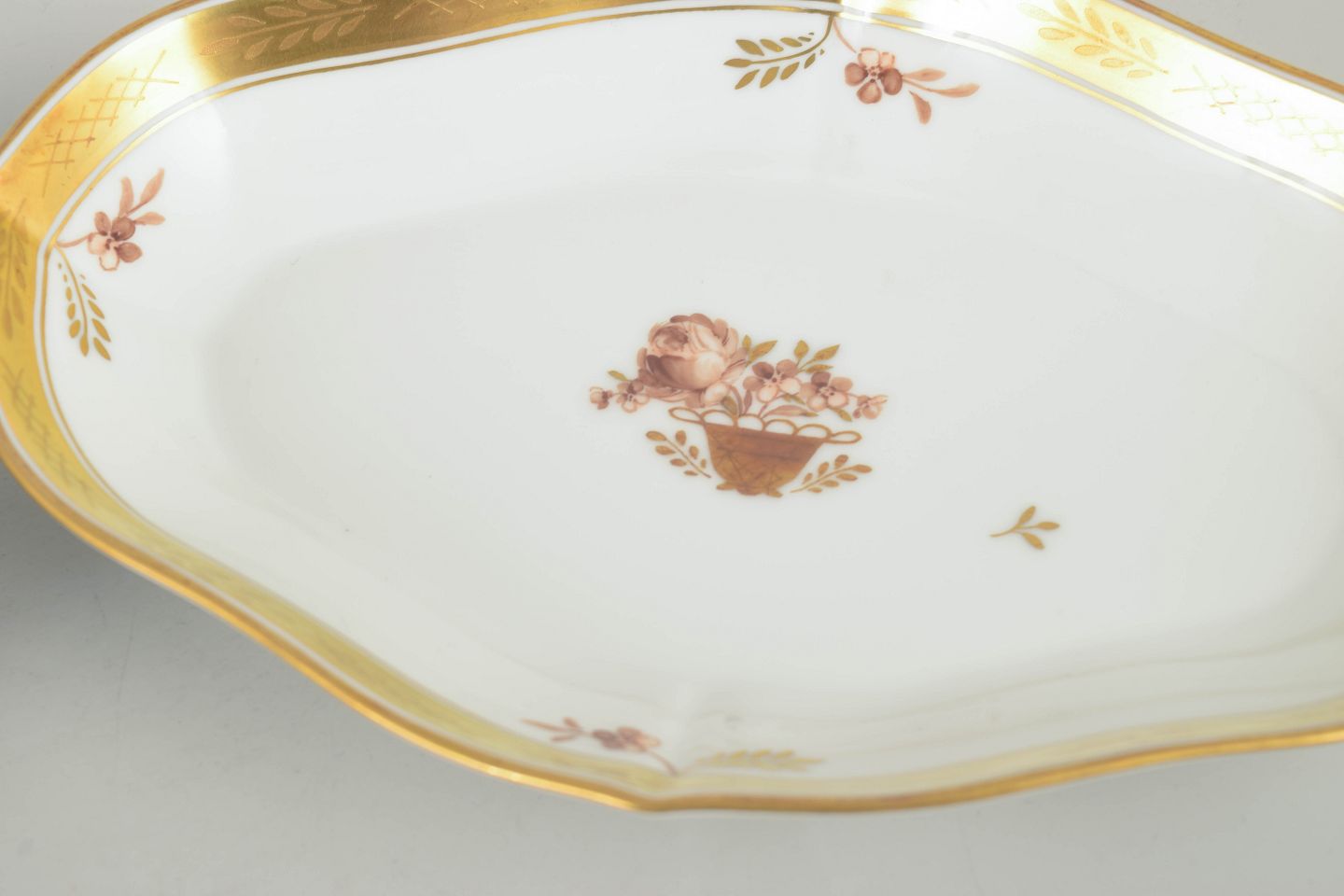 Royal Copenhagen’s “Golden Basket” series combines classical porcelain craftsmanship with refined gilded details. The series became popular in the mid-20th century and remains highly appreciated for its elegant decoration and artisanal quality.