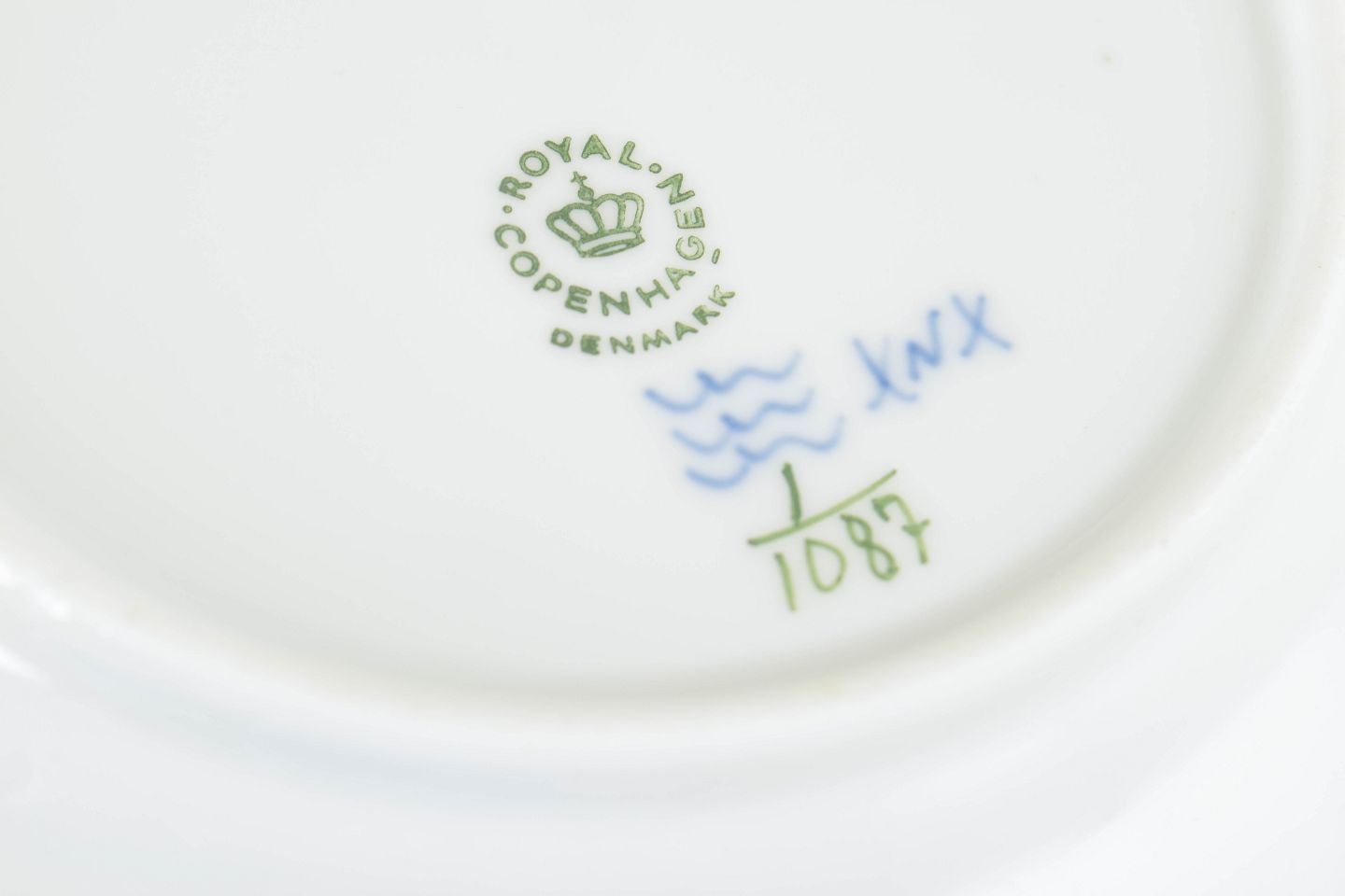 Plates in the Blue Fluted full lace pattern with a pierced lace border and hand-painted cobalt blue decoration. Executed in classic fluted forms and suitable as luncheon or dessert plates.